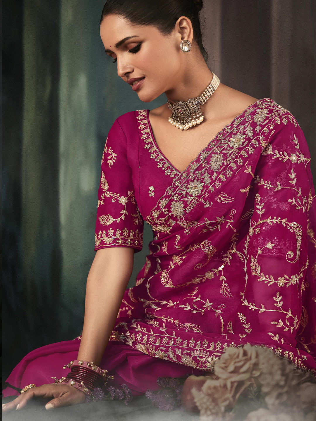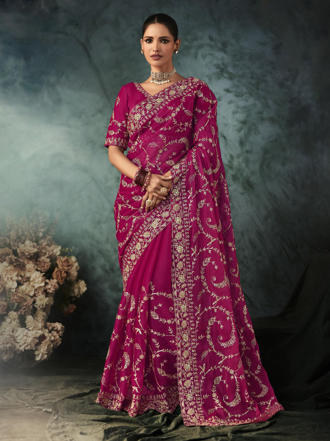 Pink and Majenta color Saree in Silk fabric with Embroidered, Sequence, Thread work