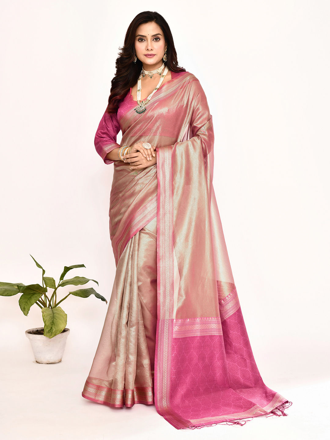 Silk Reception Saree in Pink and Majenta with Weaving work