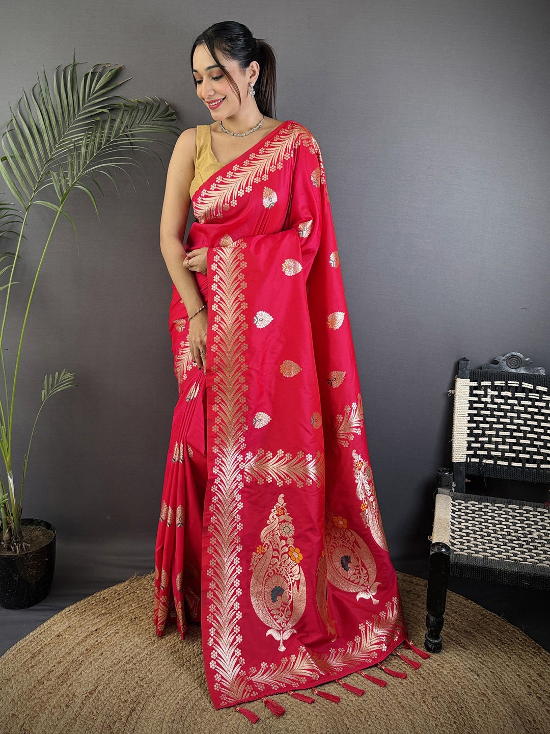 Silk Festive Saree in Pink and Majenta with Weaving work
