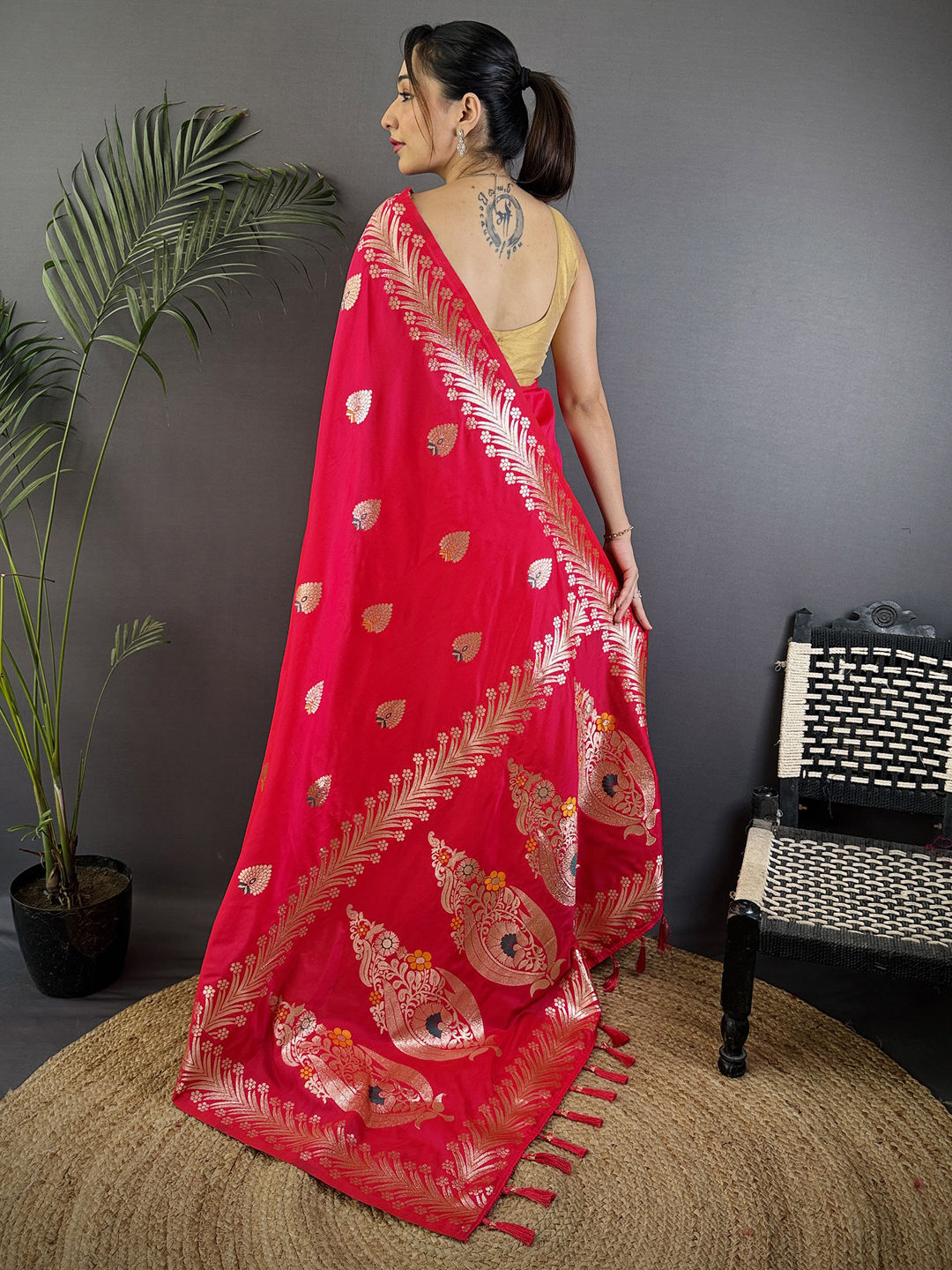 in Pink and Majenta with Weaving work