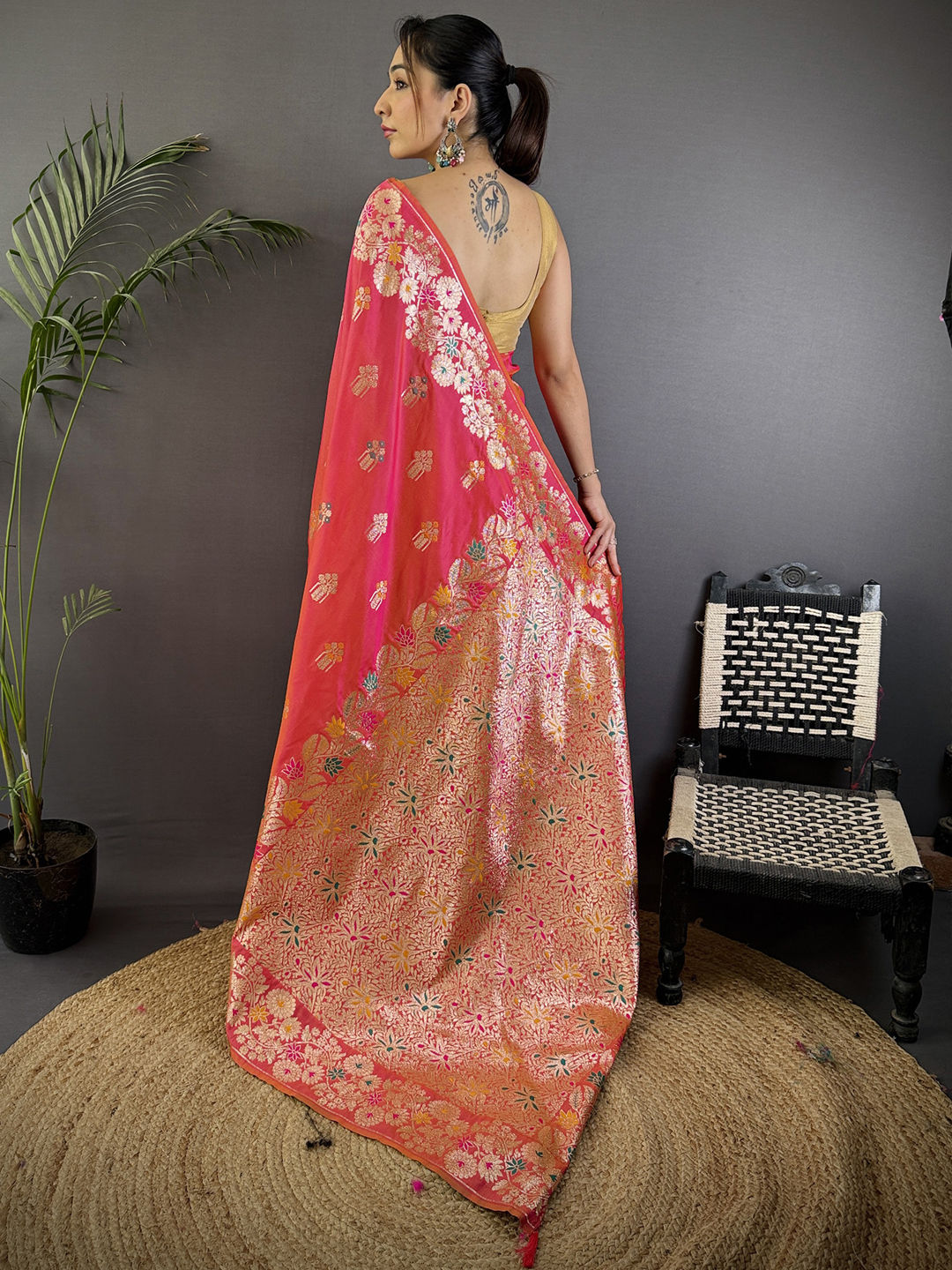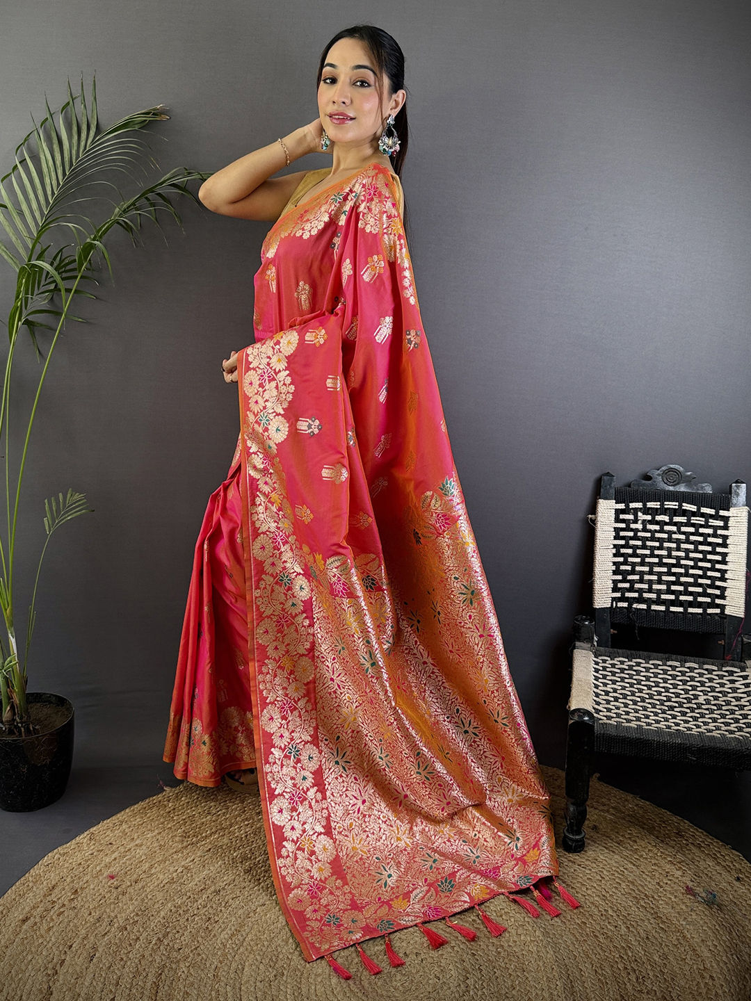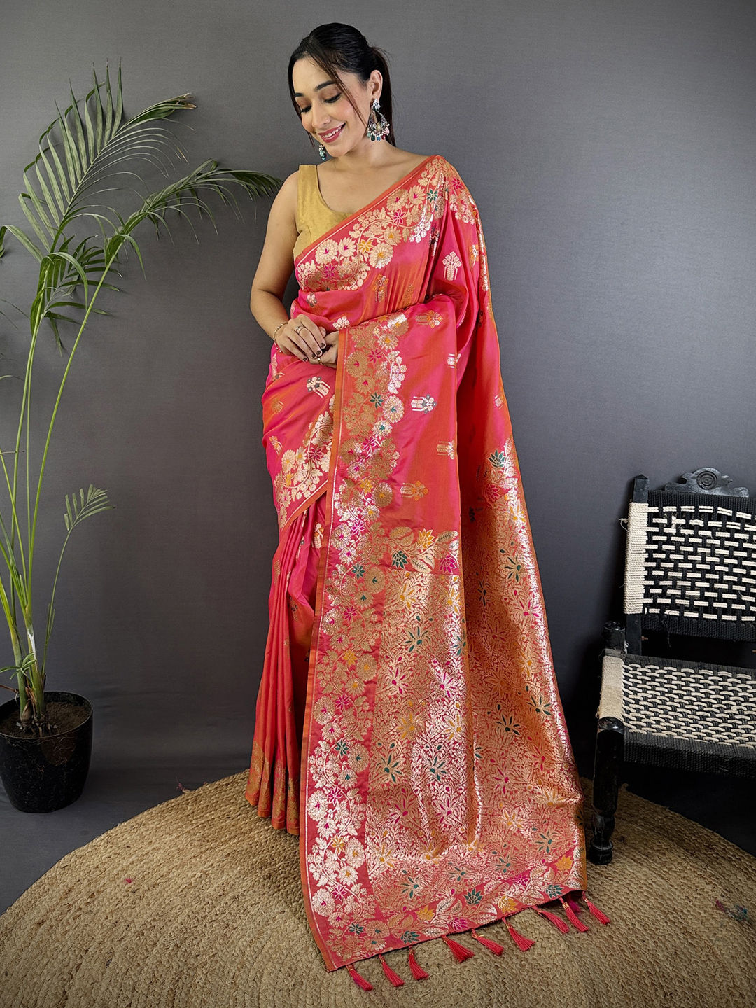 in Pink and Majenta with Weaving work