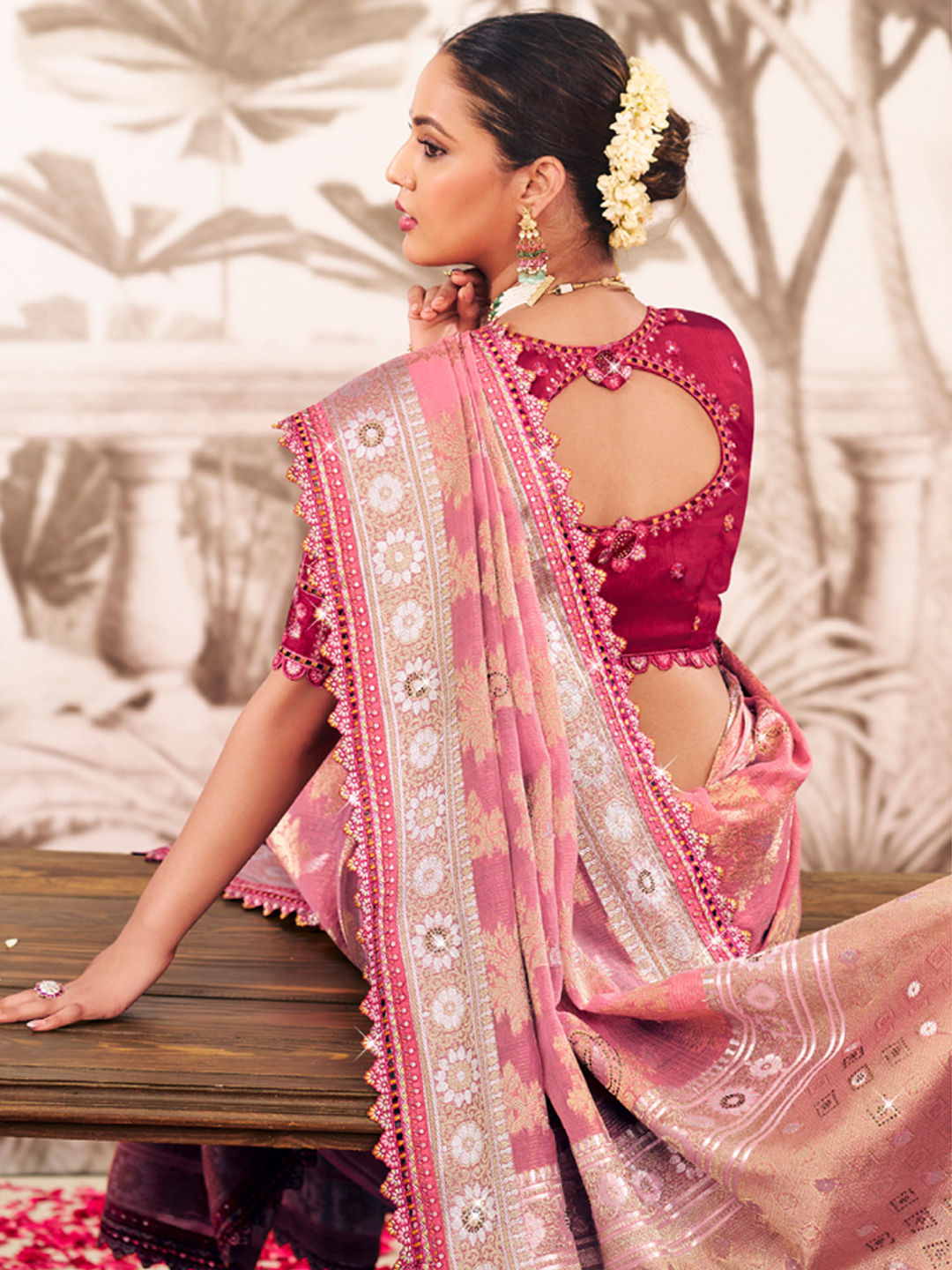 in Pink and Majenta with Weaving work