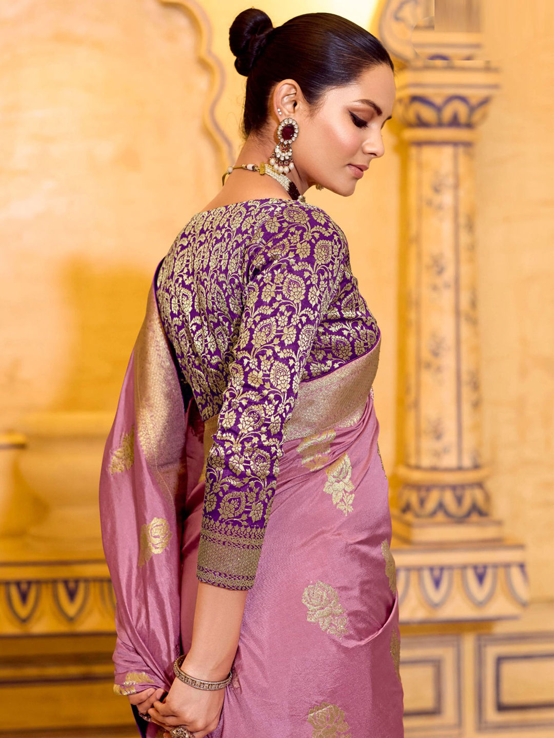 Pink and Majenta color Saree in Silk fabric with Weaving work