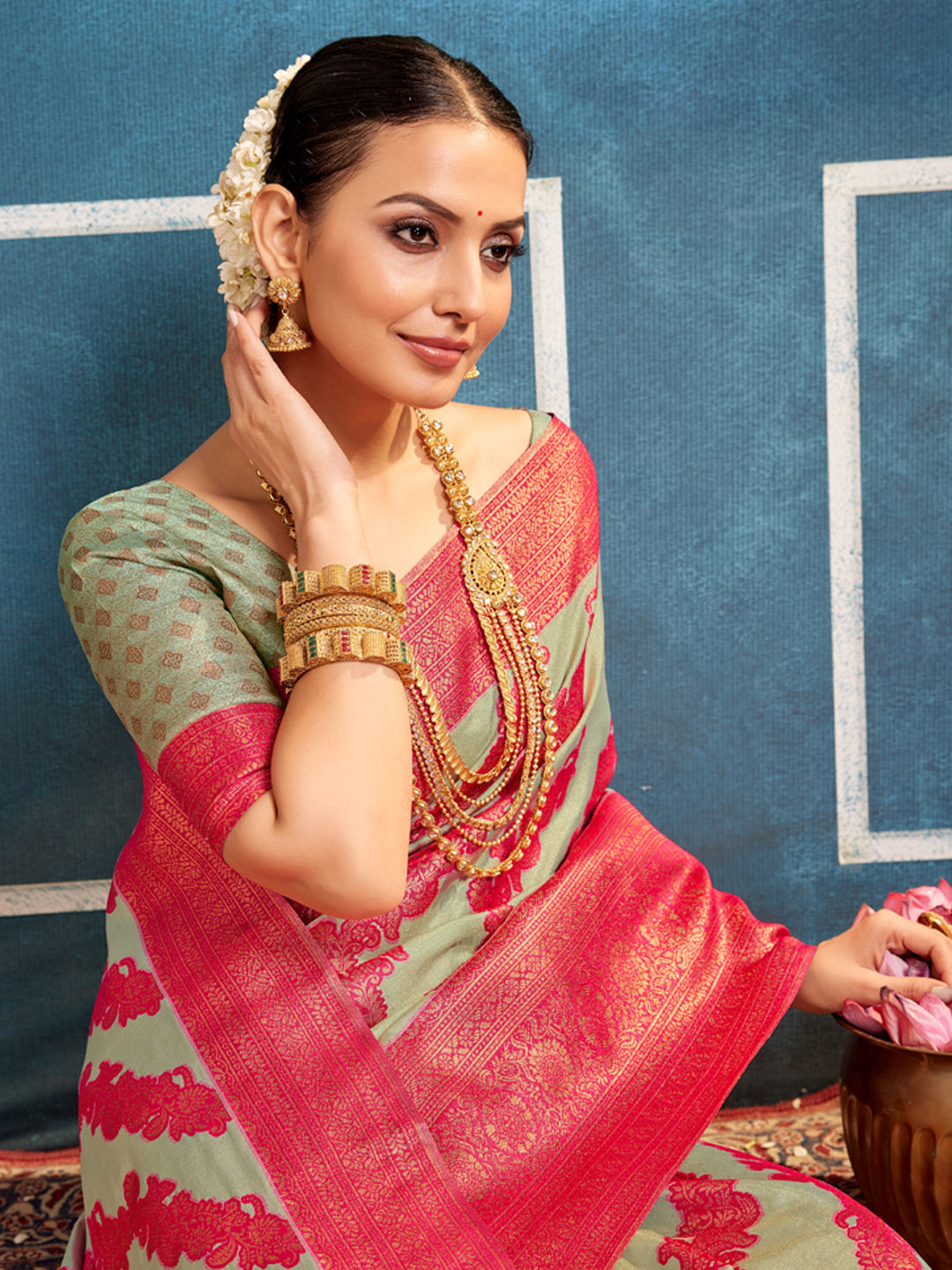 Silk Traditional Saree in Pink and Majenta with Weaving work