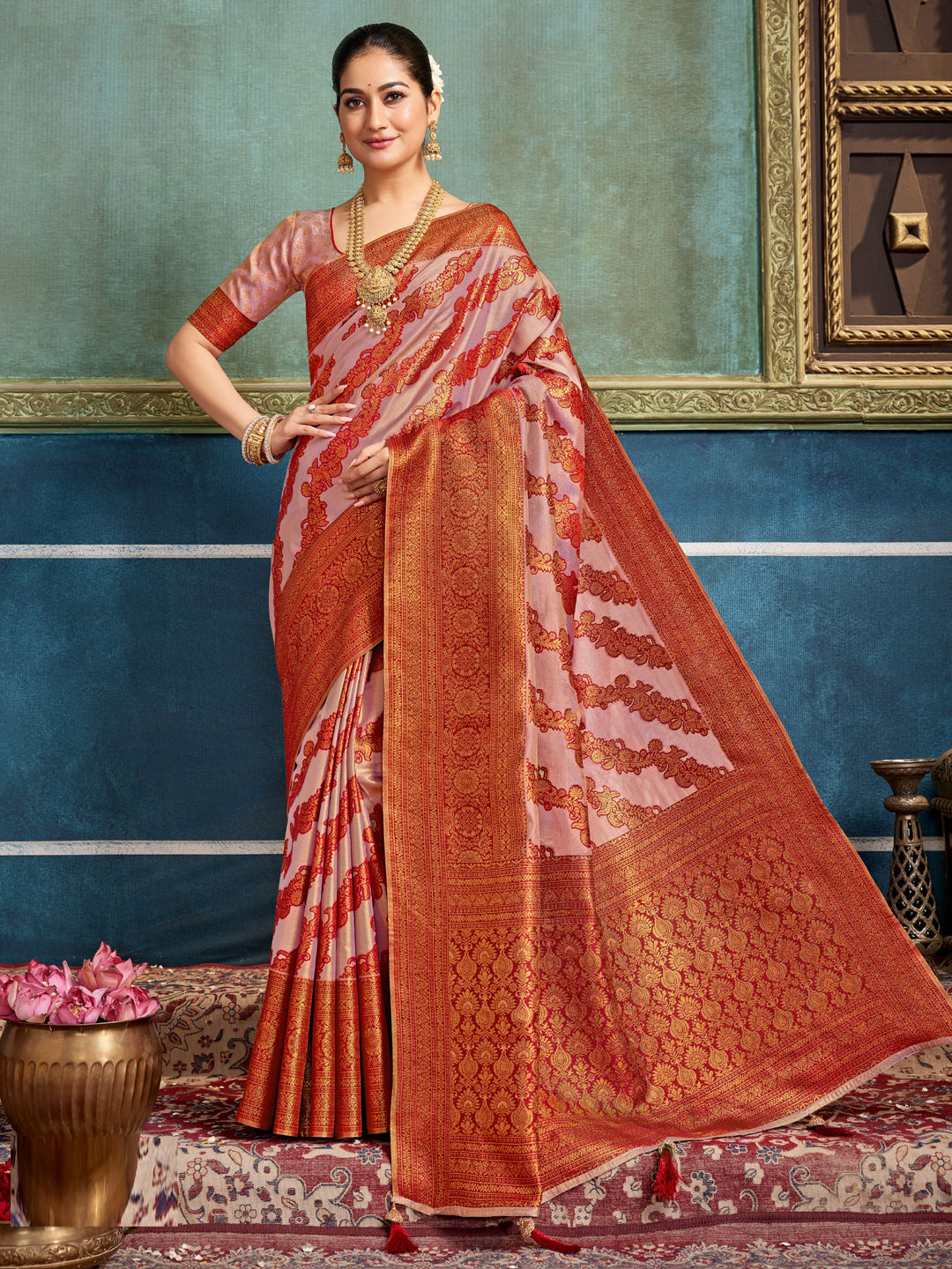 Silk Traditional Saree in Pink and Majenta with Weaving work