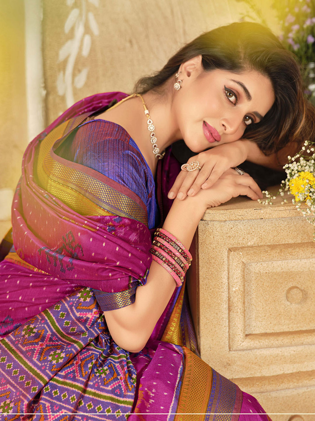 Silk Traditional Saree in Pink and Majenta with Weaving work