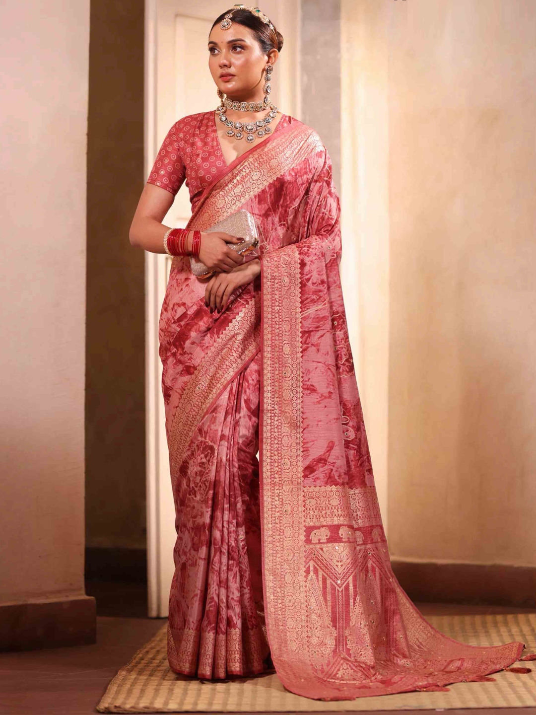 in Pink and Majenta with Weaving work