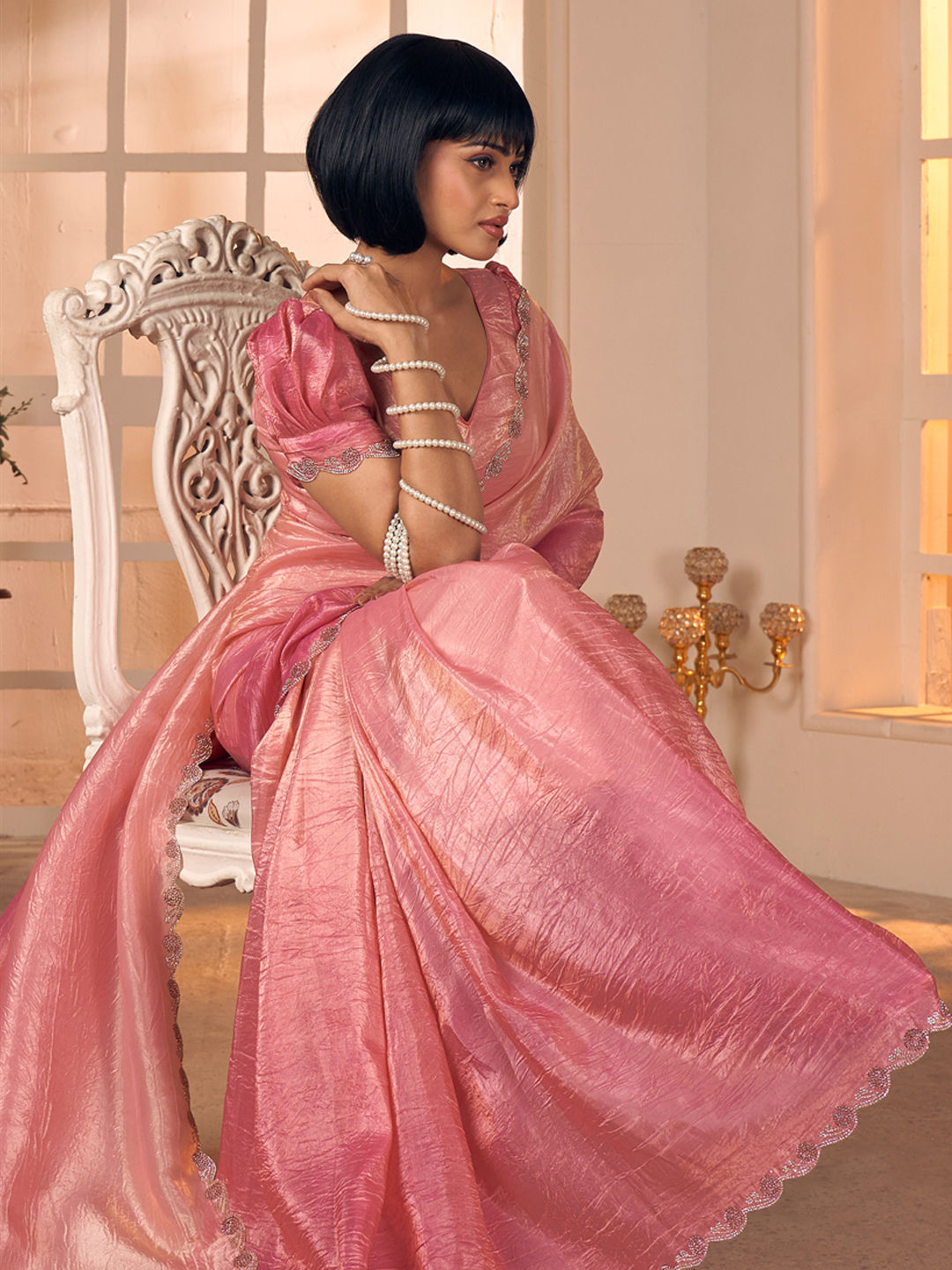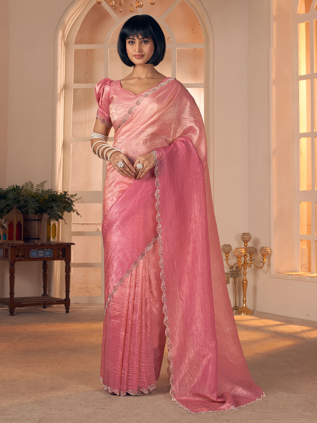 Silk Festive Saree in Pink and Majenta with Zircon work