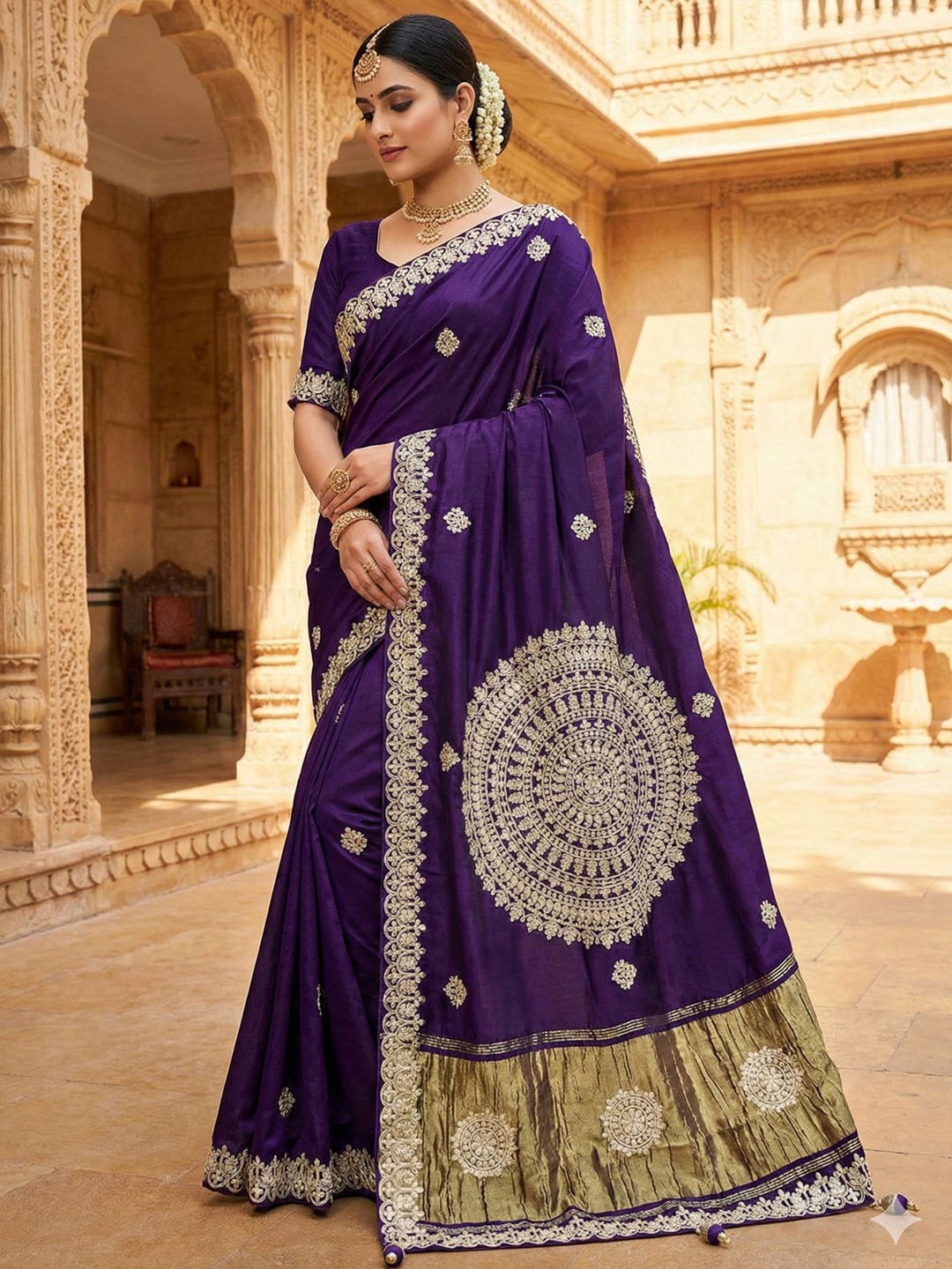 Purple and Violet color Saree in Silk fabric with Embroidered, Thread, Zari work