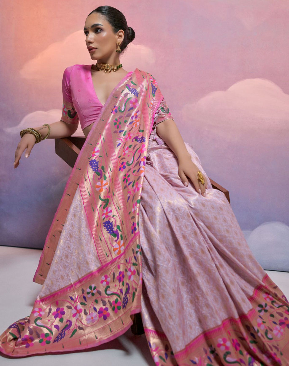 Silk Traditional Saree in Pink and Majenta with Weaving work