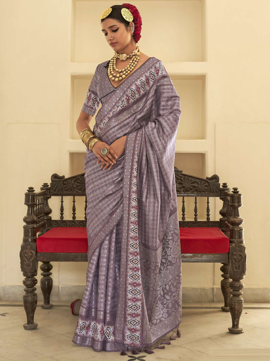 Purple and Violet color Saree in Silk fabric with Weaving, Zari work