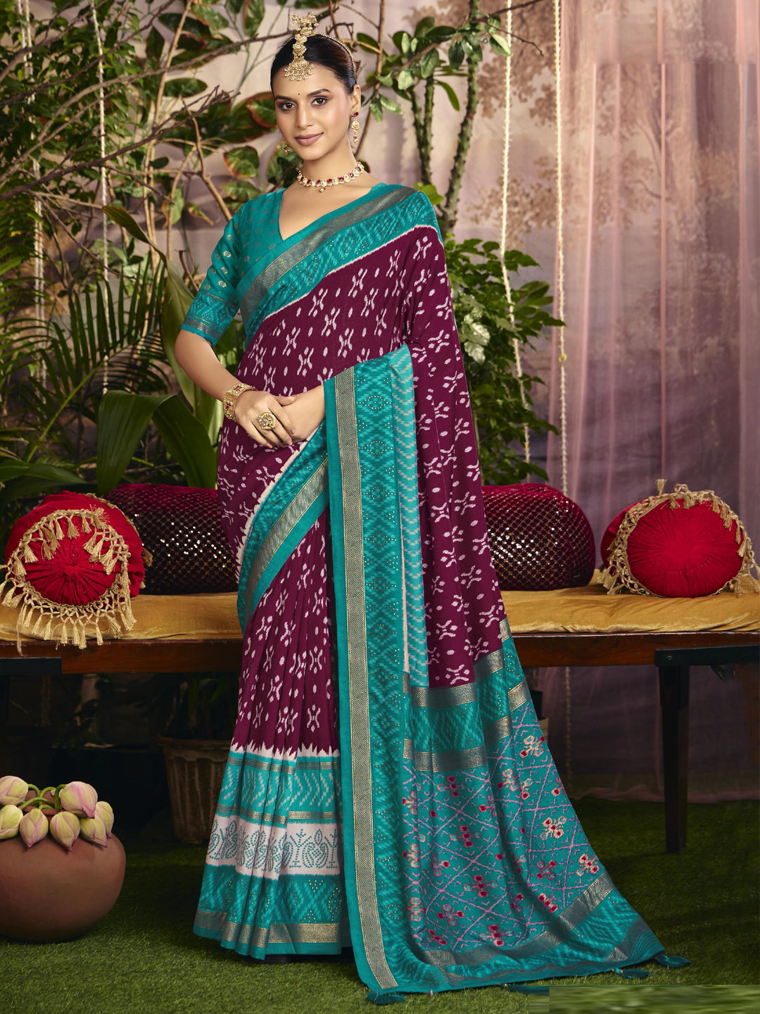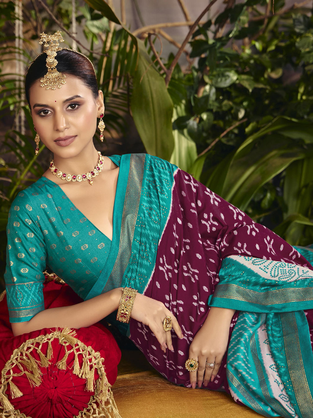 Purple and Violet color Saree in Silk fabric with Stone, Weaving work