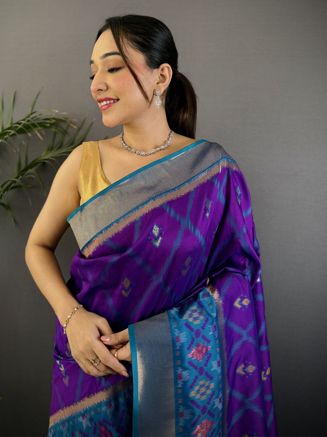 Purple and Violet color Saree in Silk fabric with Weaving work