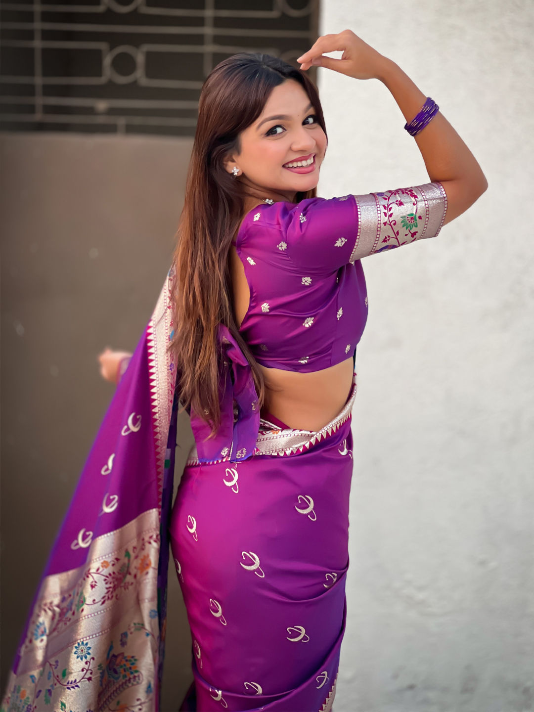 in Purple and Violet with Weaving work