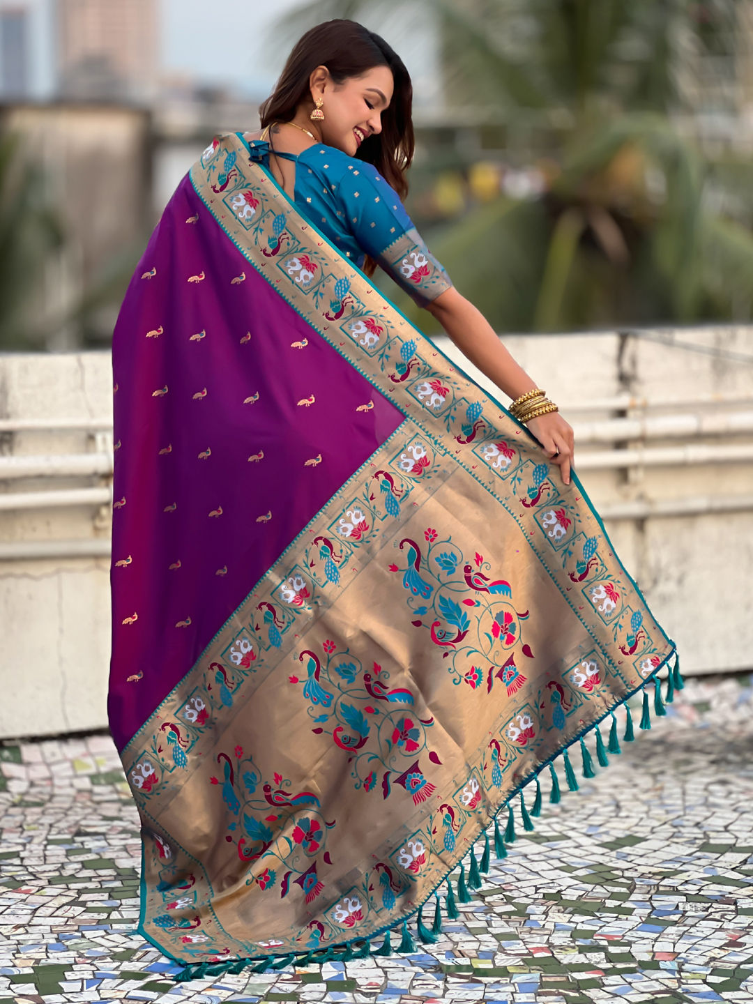 Purple and Violet color Saree in Silk fabric with Weaving work