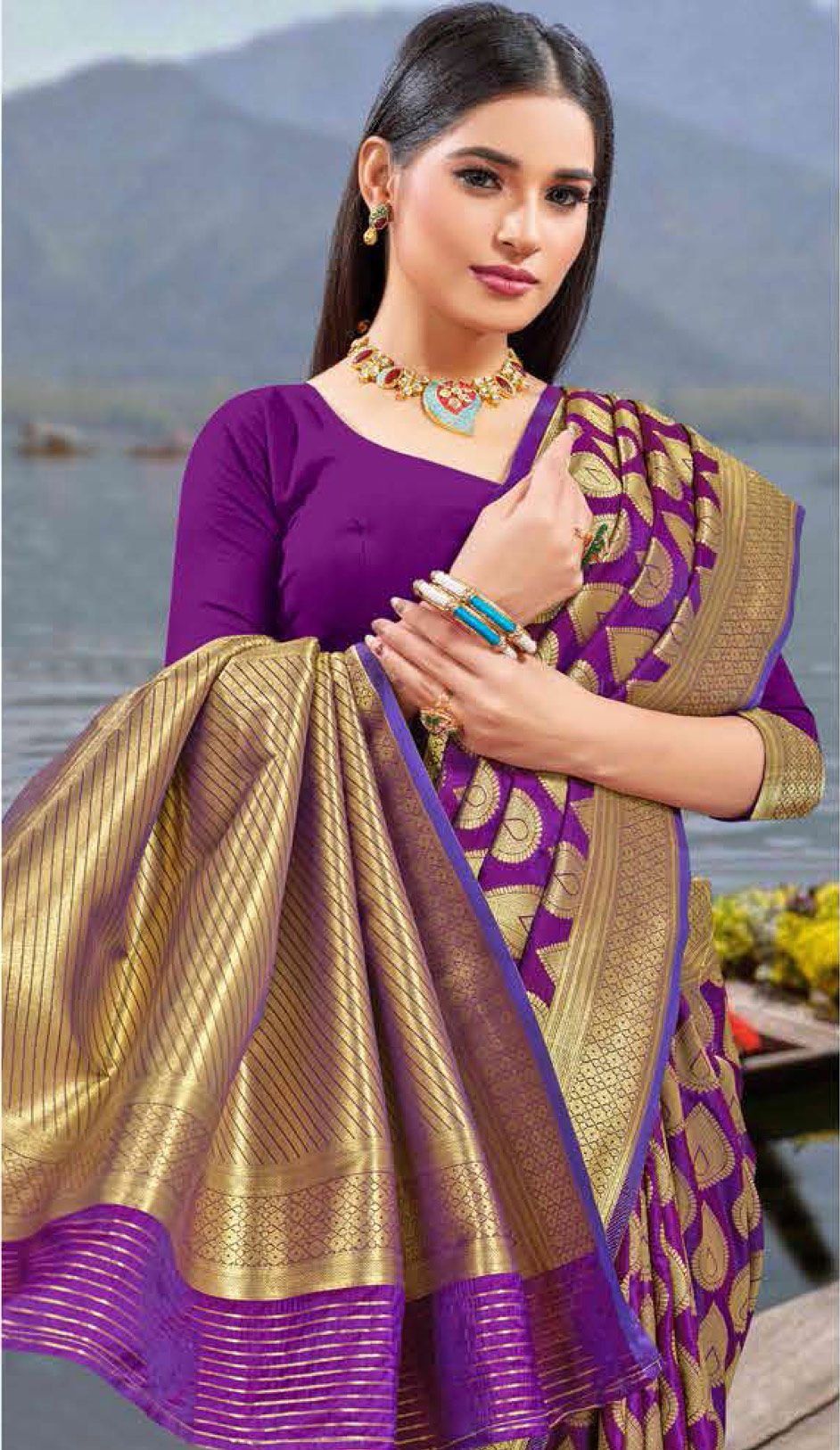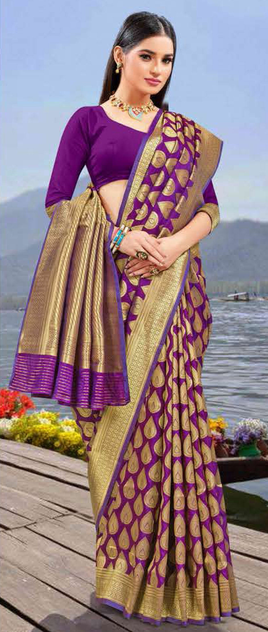 in Purple and Violet with Zari work