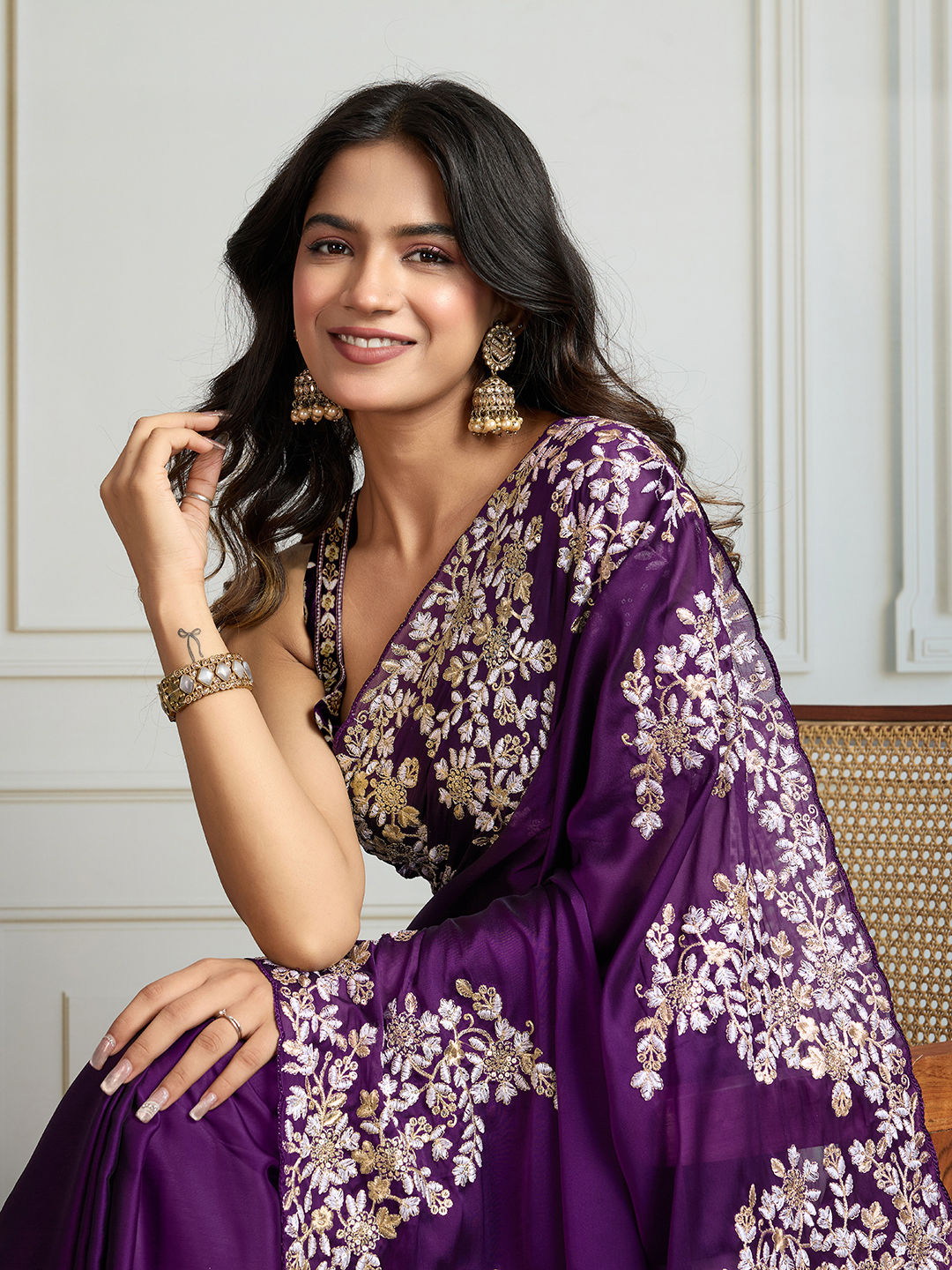 Purple and Violet color Saree in Silk fabric with Embroidered, Sequence, Zari work