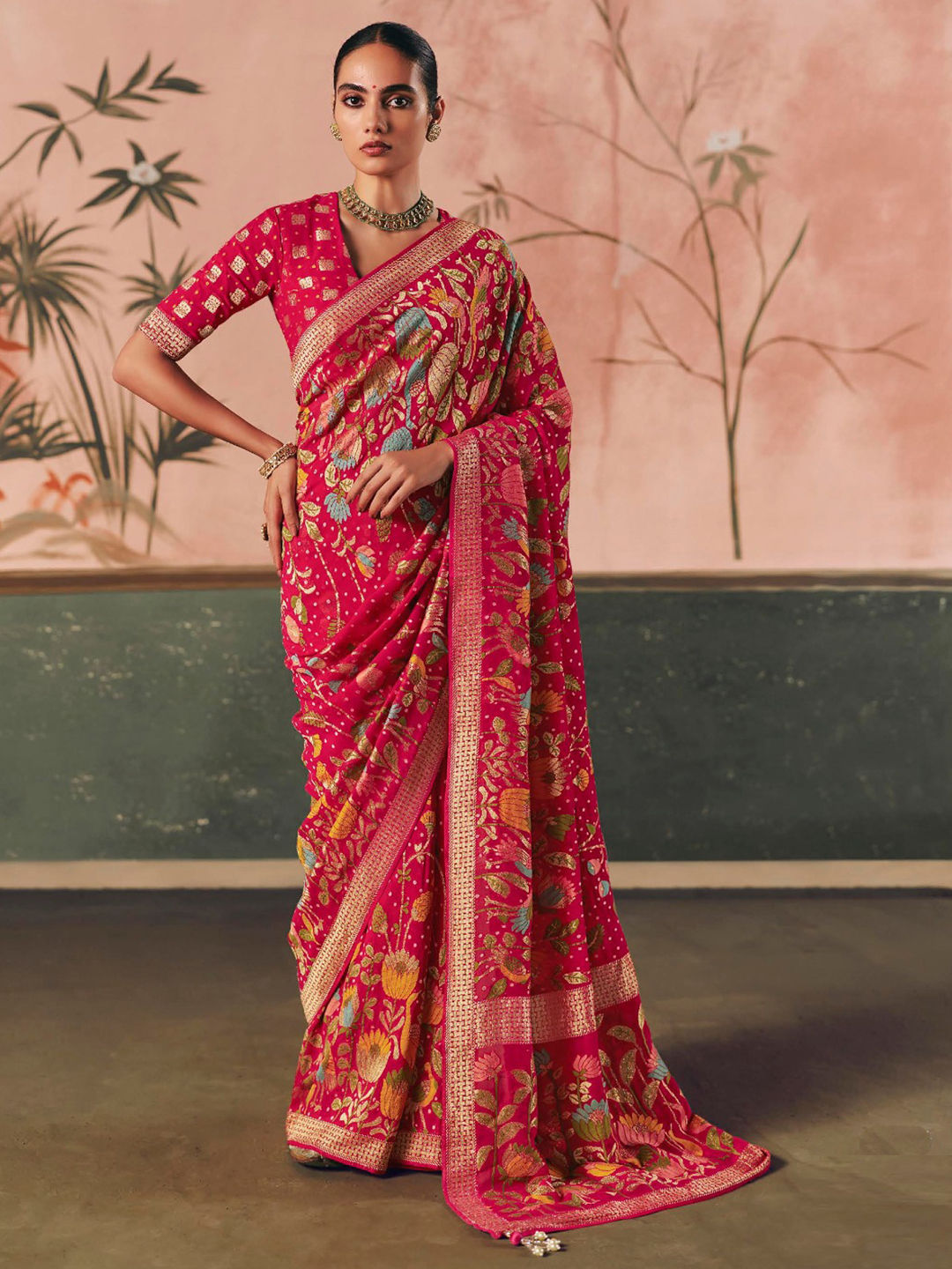 Silk Wedding Saree in Pink and Majenta with Weaving work