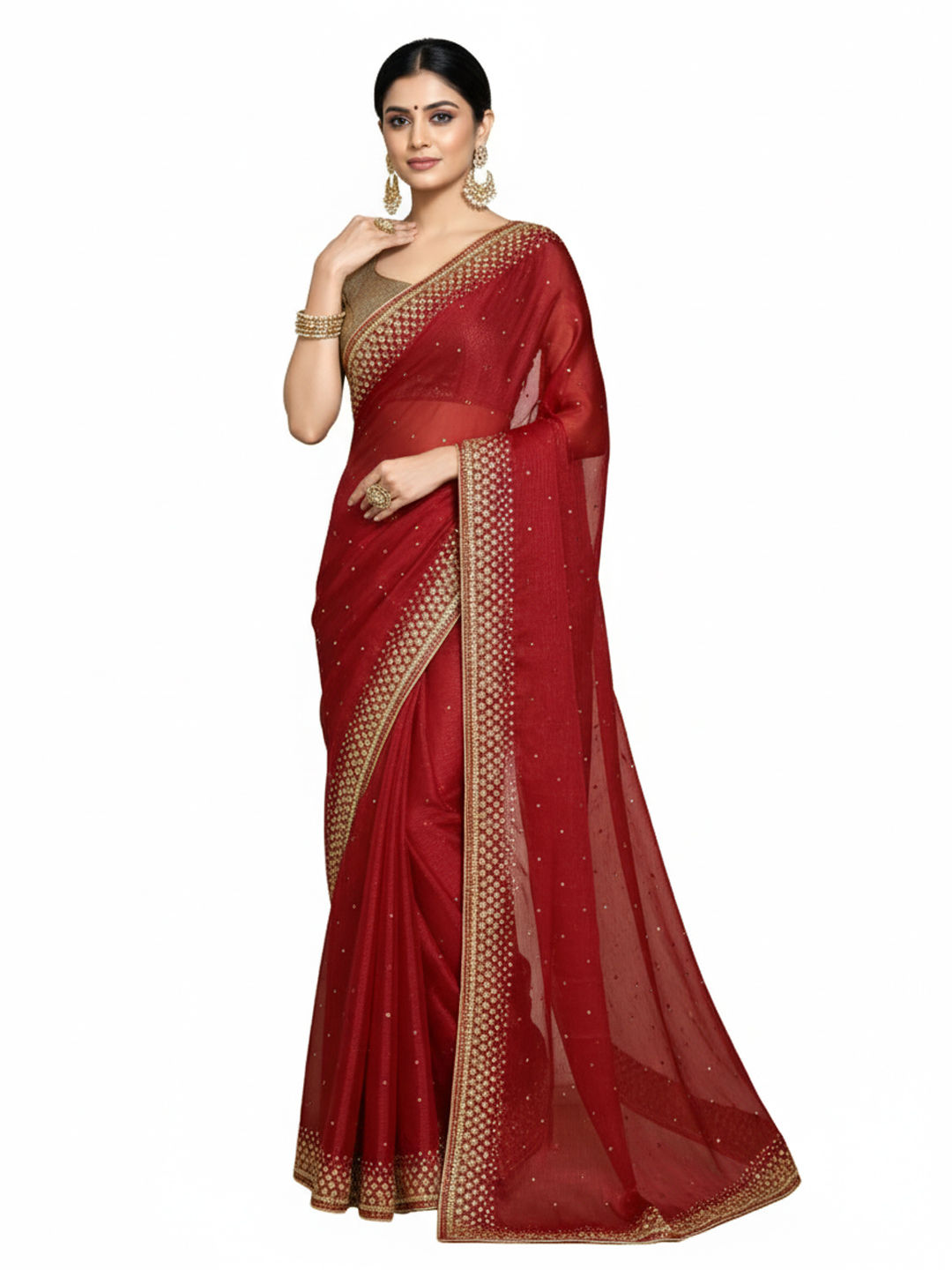 Georgette Wedding Saree in Red and Maroon with Stone work