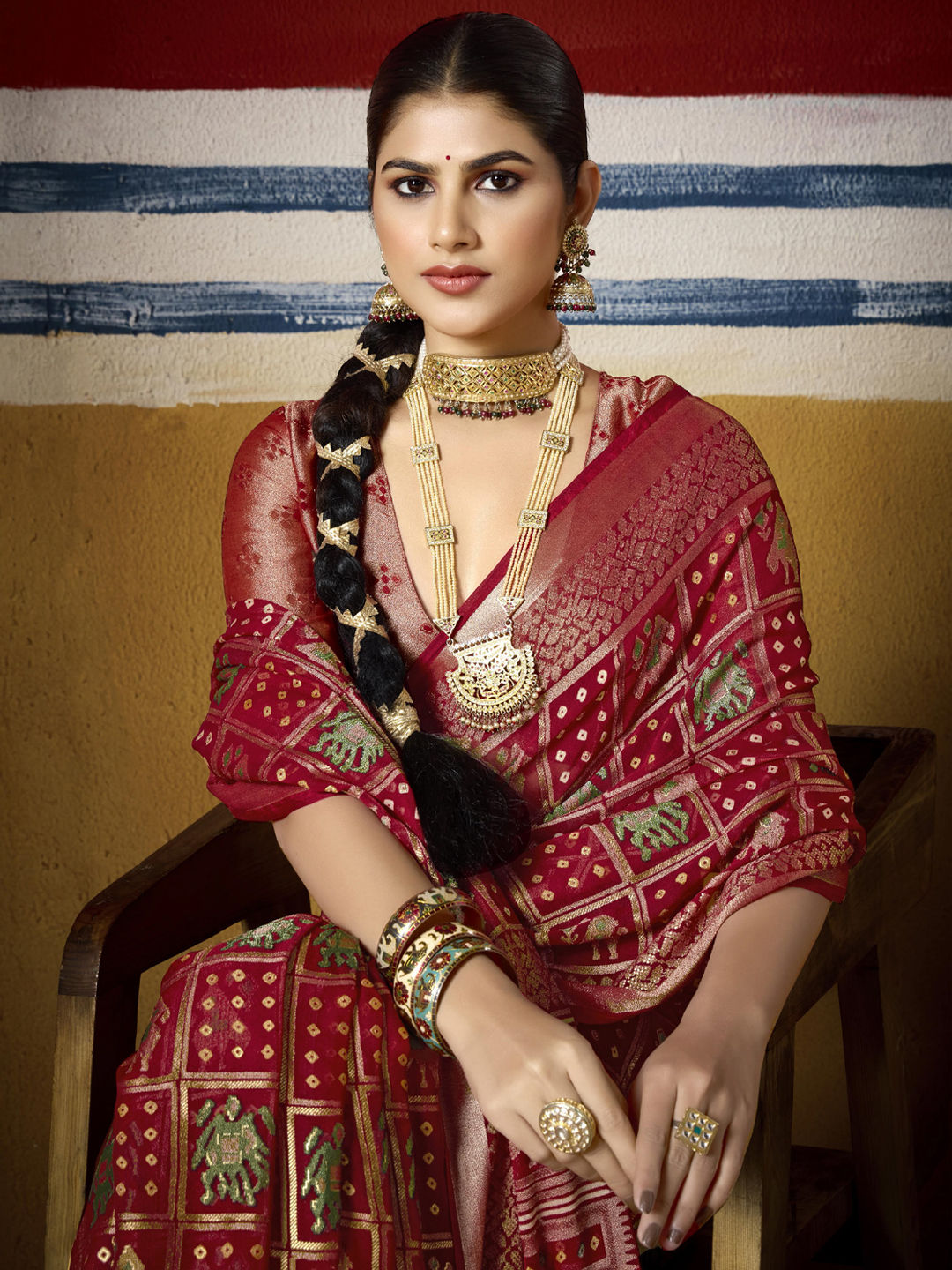 in Red and Maroon with Weaving work