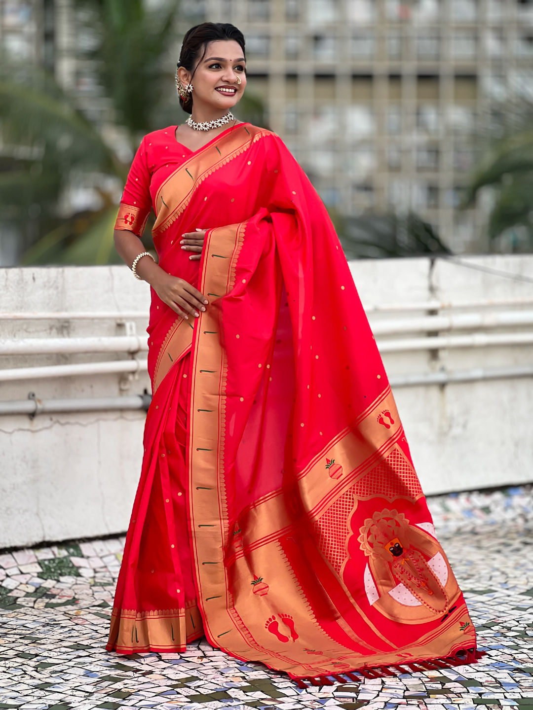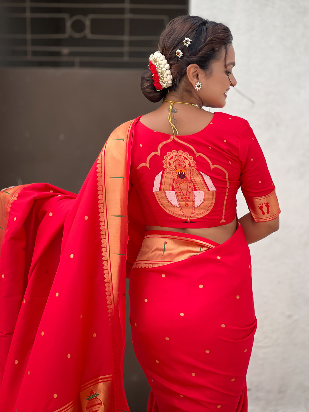 in Red and Maroon with Weaving work