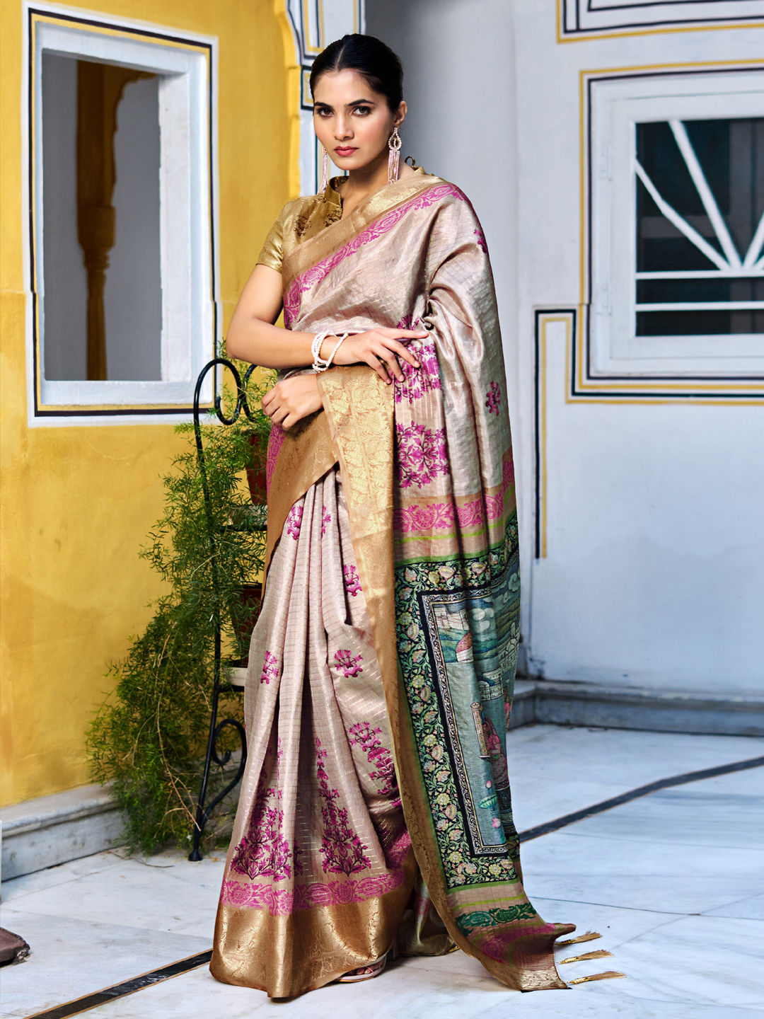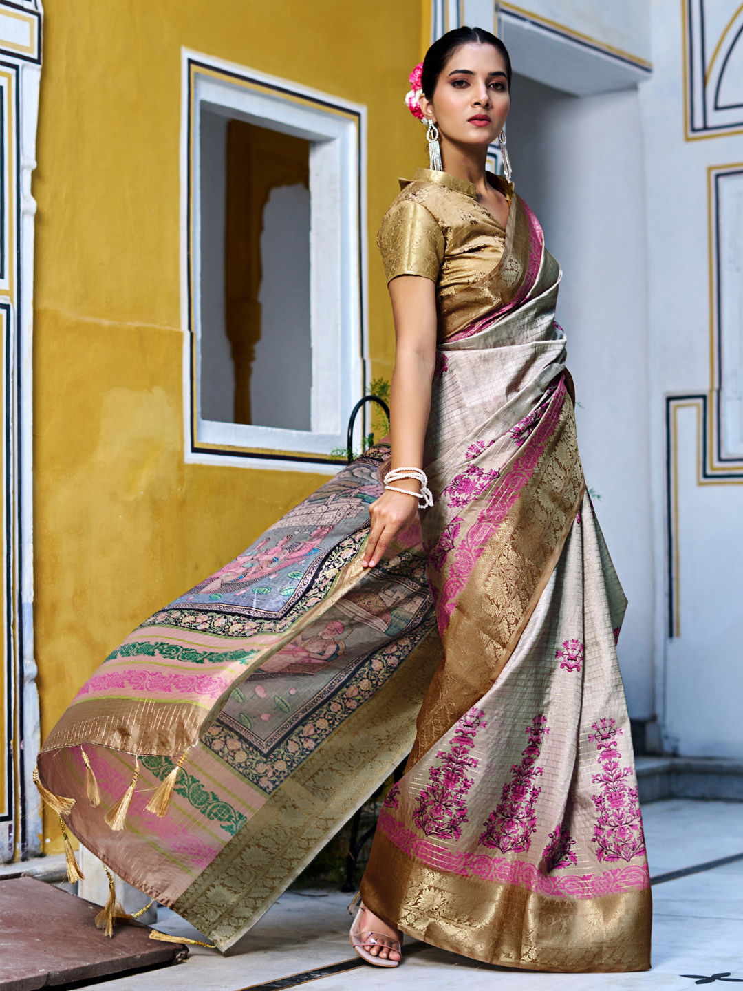 White and Off White color Saree in Blended, Silk fabric with Printed work