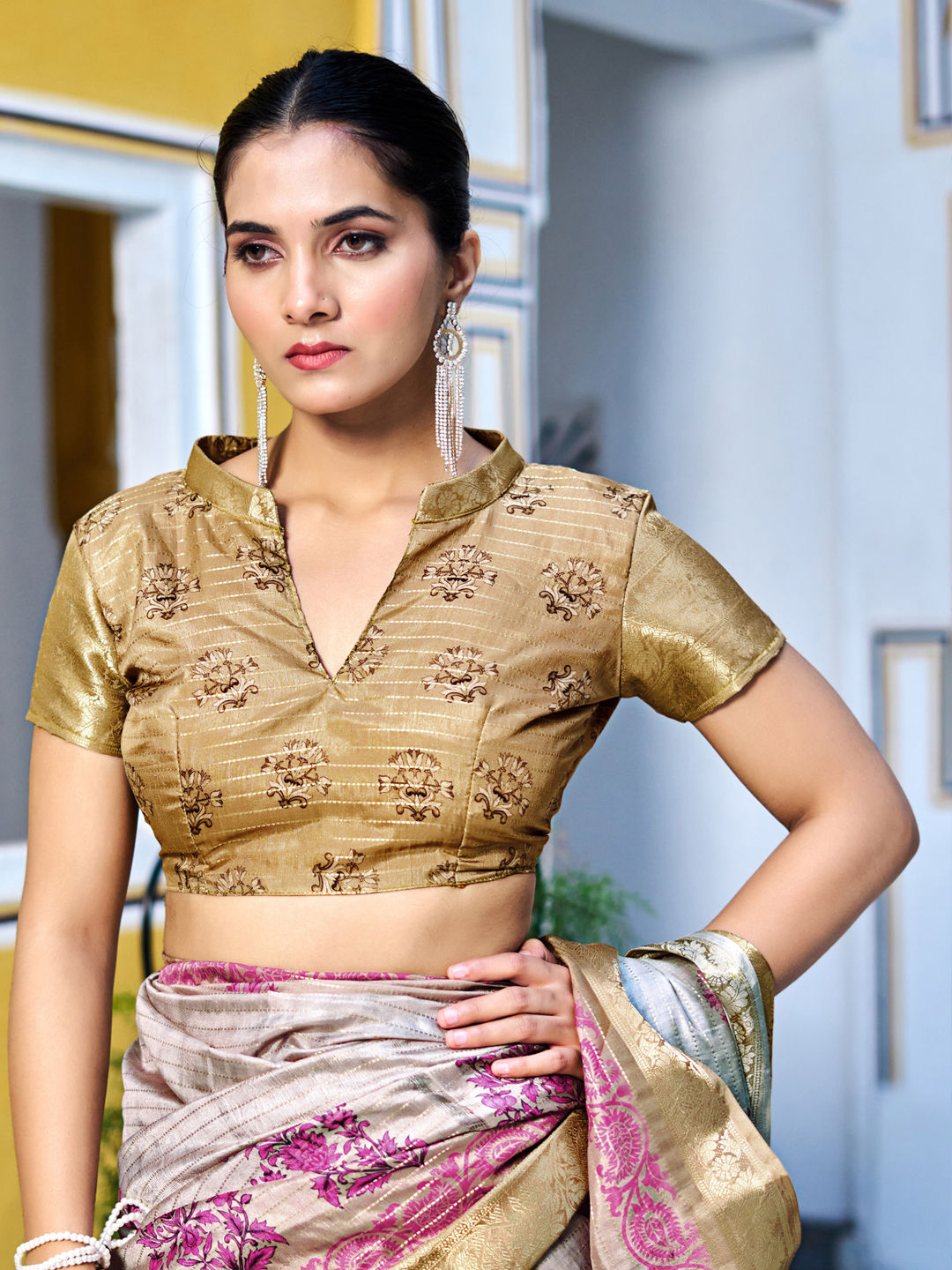 Blended Party Wear Saree in Purple and Violet with Printed work