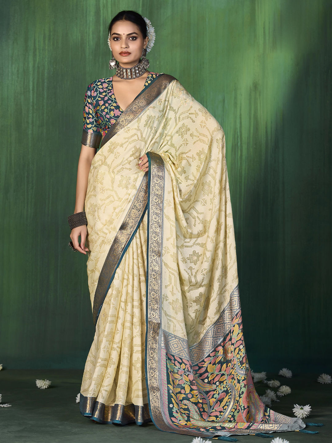 in White and Off White with Weaving work