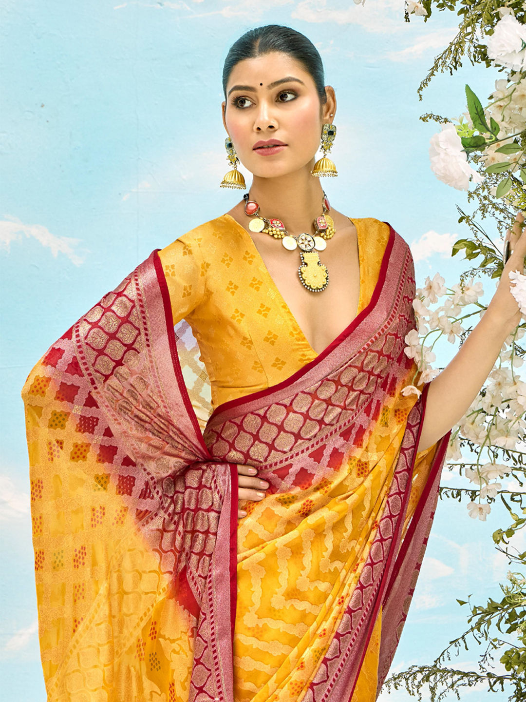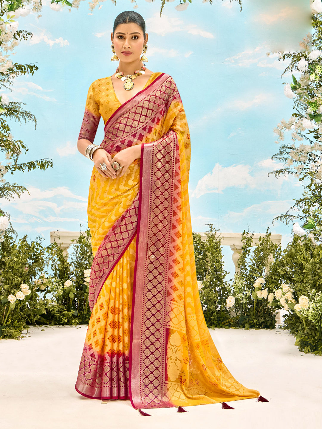 in Yellow with Weaving work