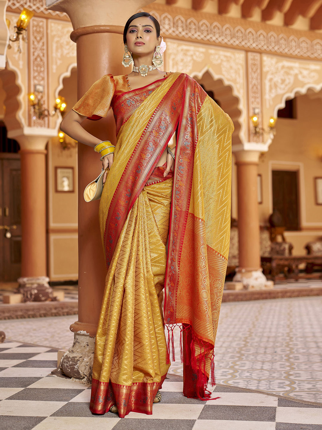 Gold, Yellow color Saree in Silk fabric with Weaving work