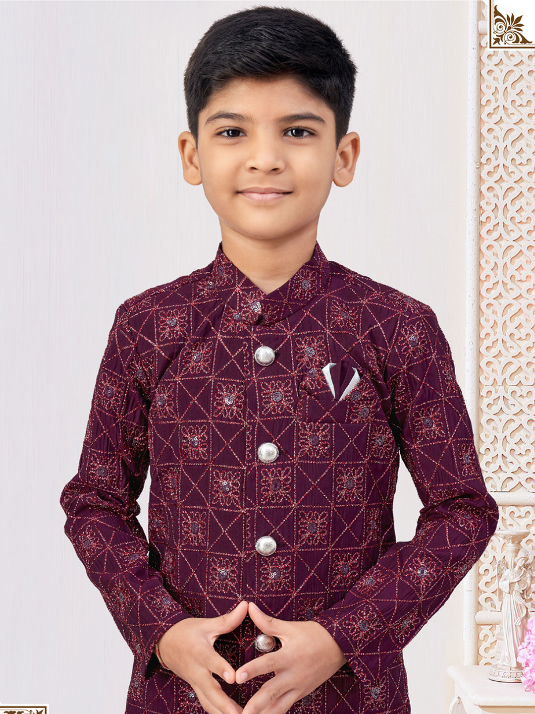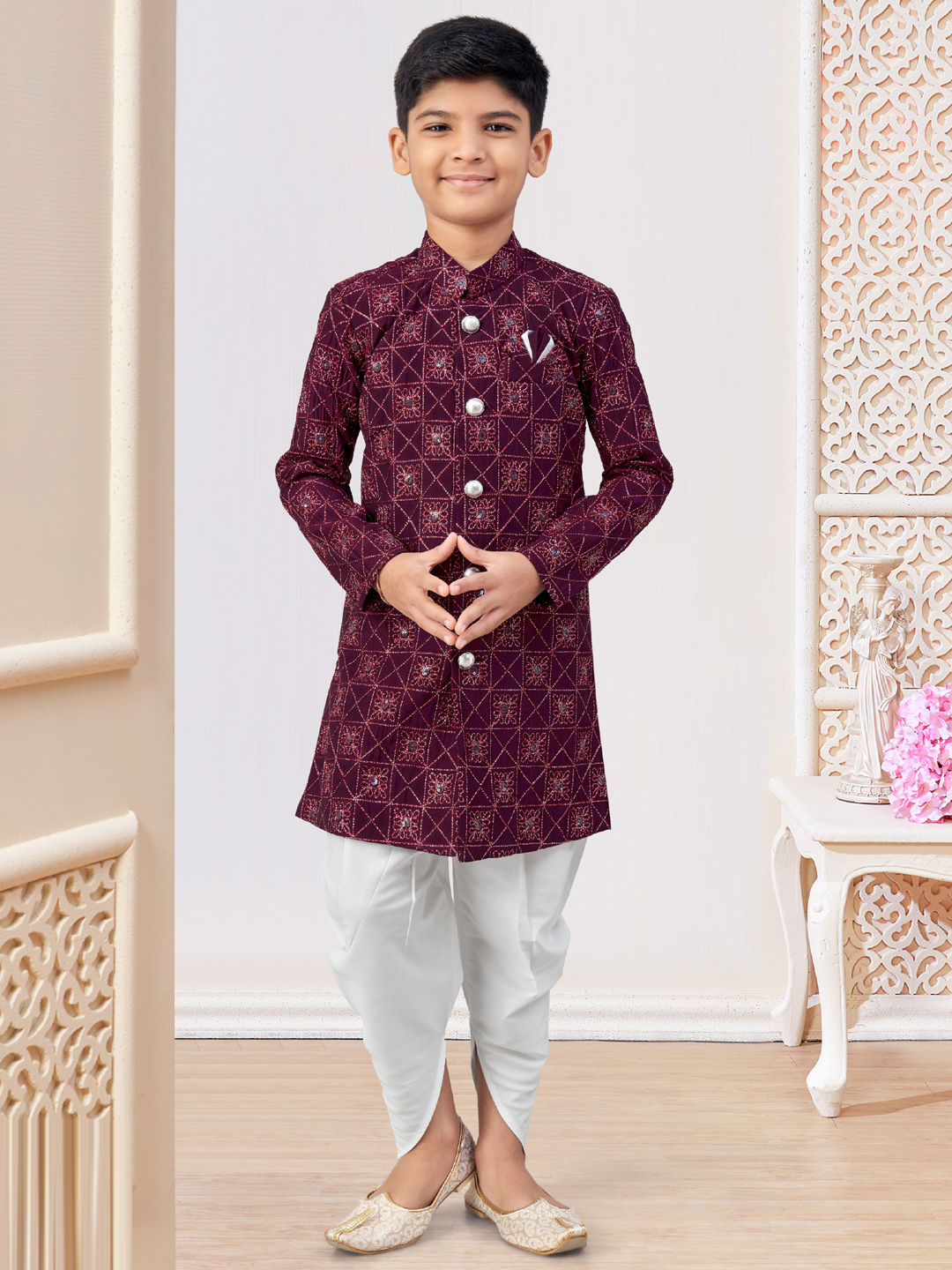 Purple and Violet color Boys Dhoti Sherwani in Silk fabric with Embroidered, Thread work