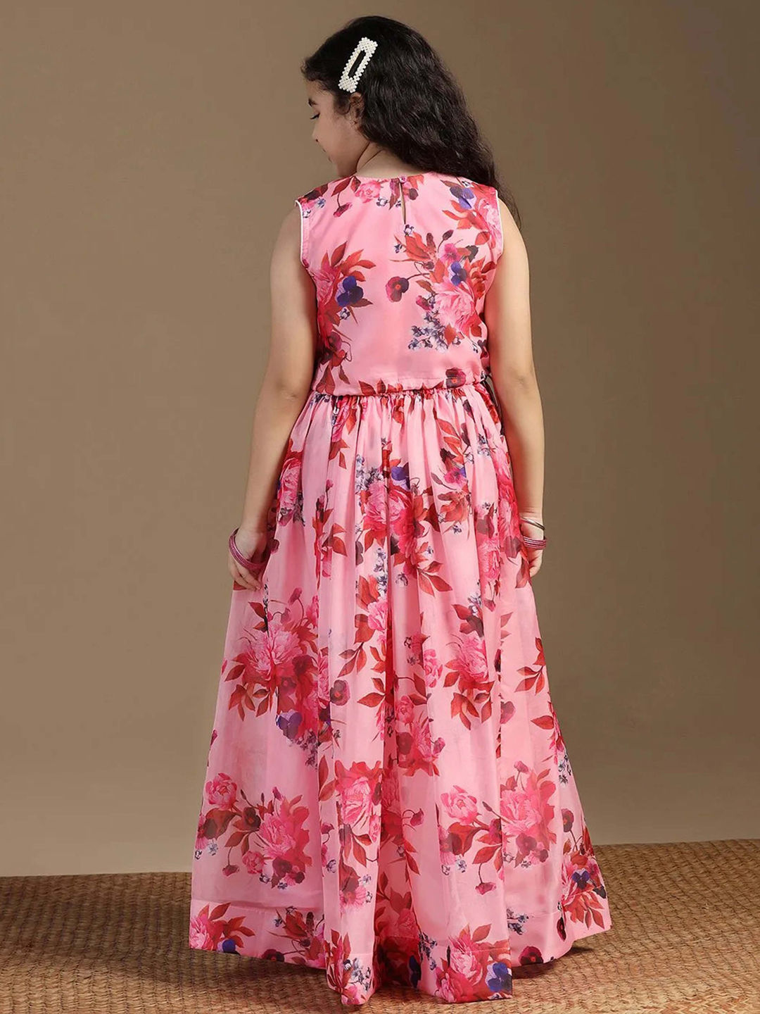 Organza Silk Festive Kids Lehenga in Pink and Majenta with Embroidered work