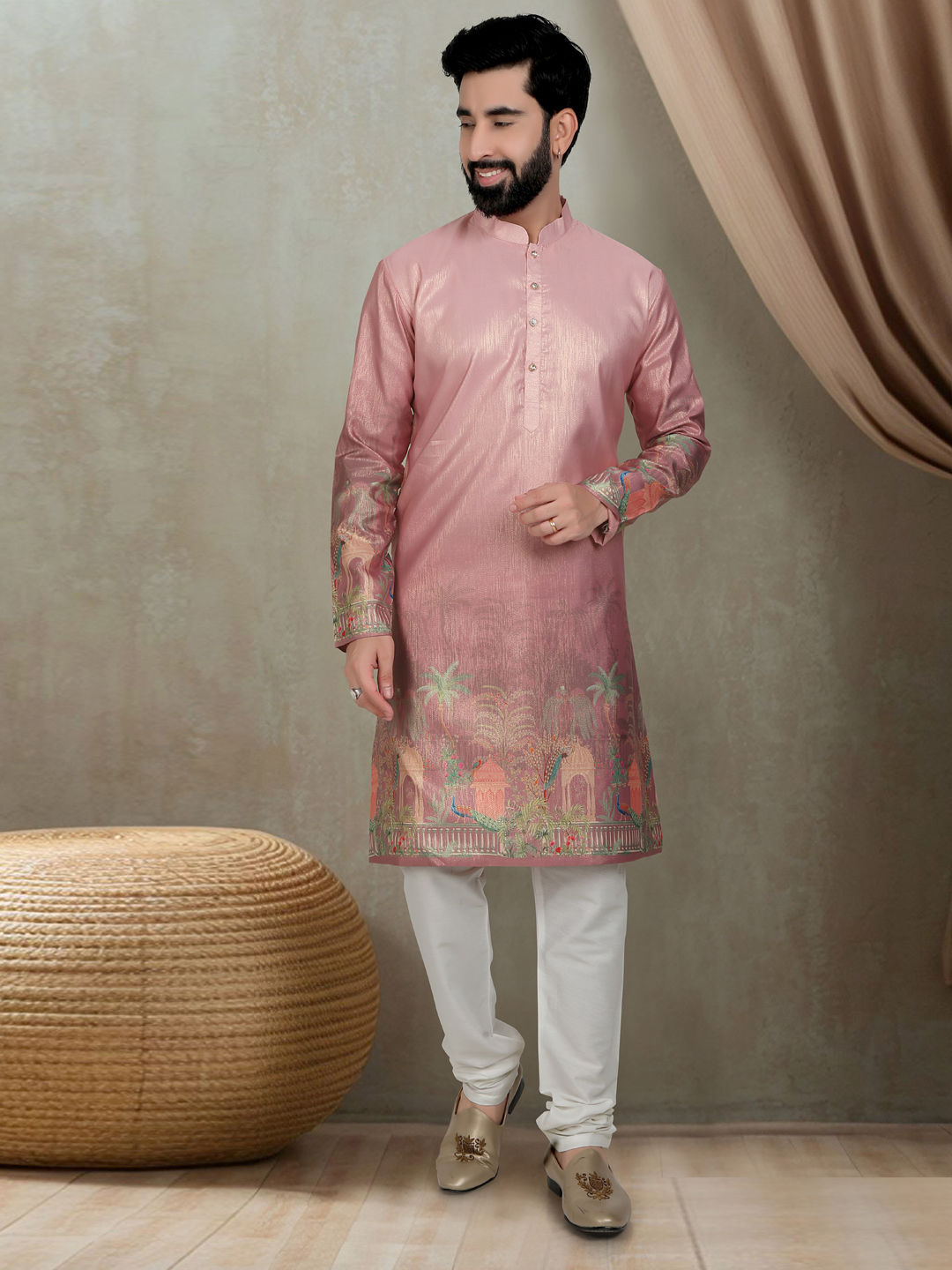 Silk Festive Kurta Pyjamas in Pink and Majenta with Printed work