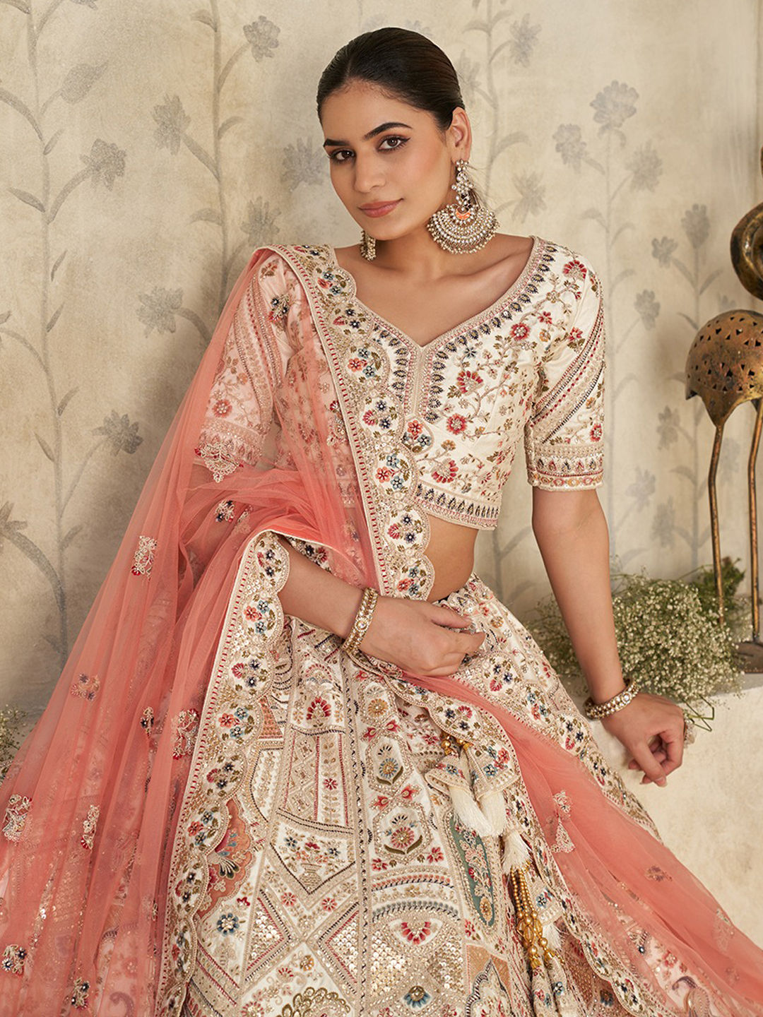 Silk Wedding Lehenga in Beige and Brown with Thread work