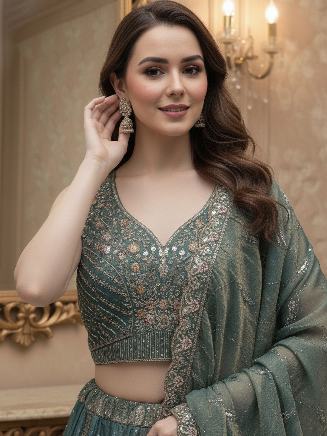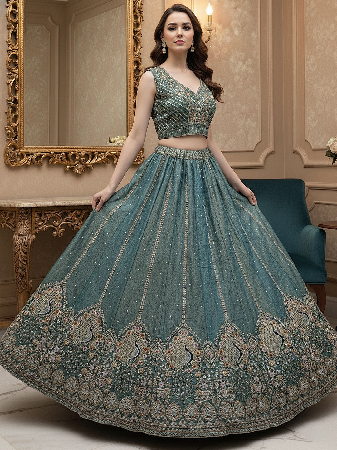 Blue color Lehenga in Silk fabric with Embroidered, Sequence work