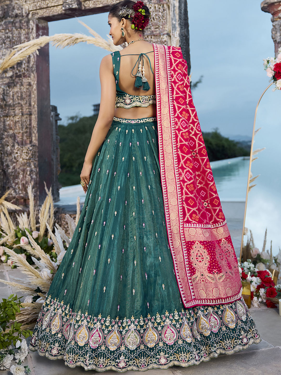 Green color Lehenga in Silk fabric with Embroidered, Sequence, Stone, Thread work