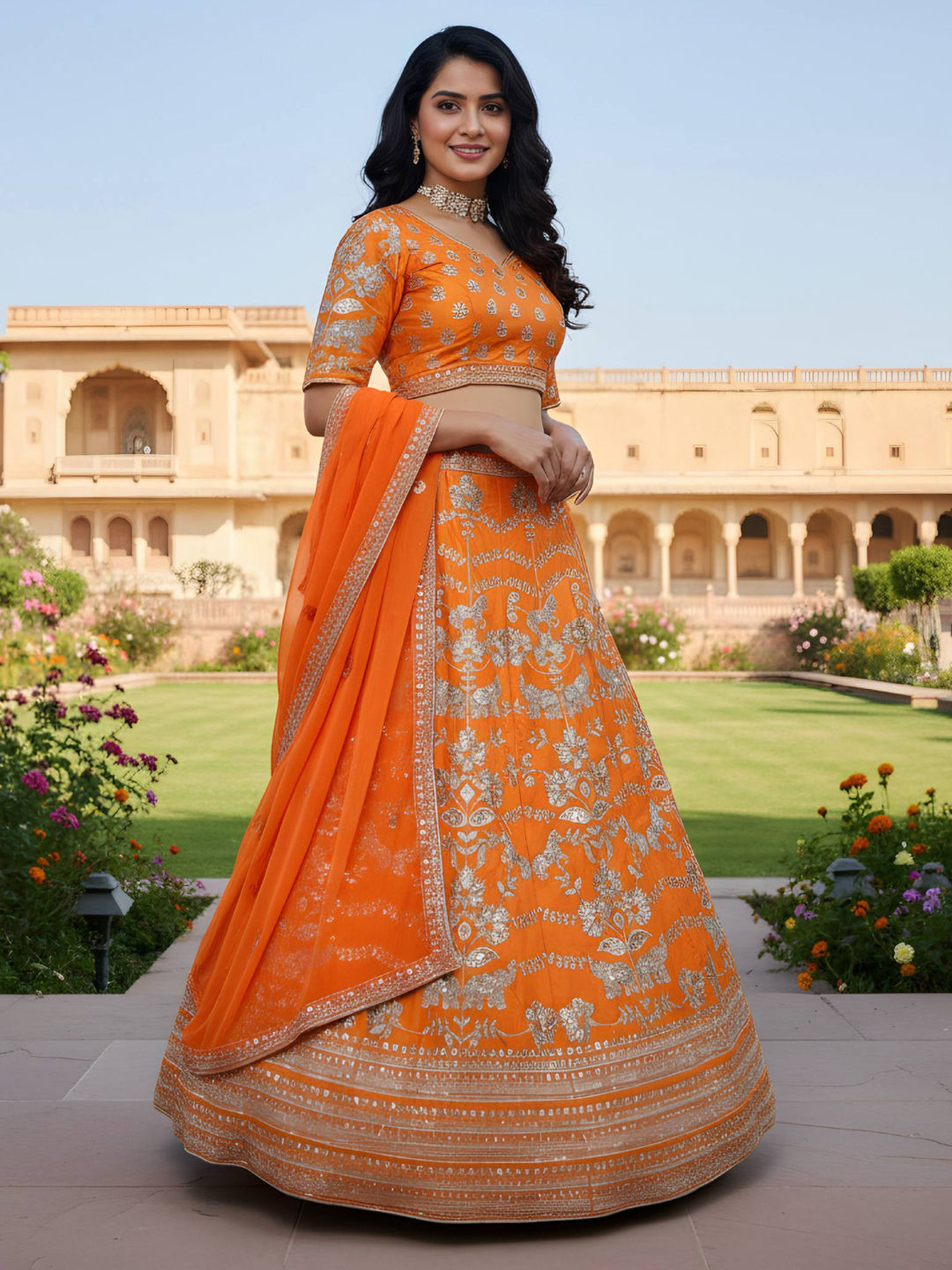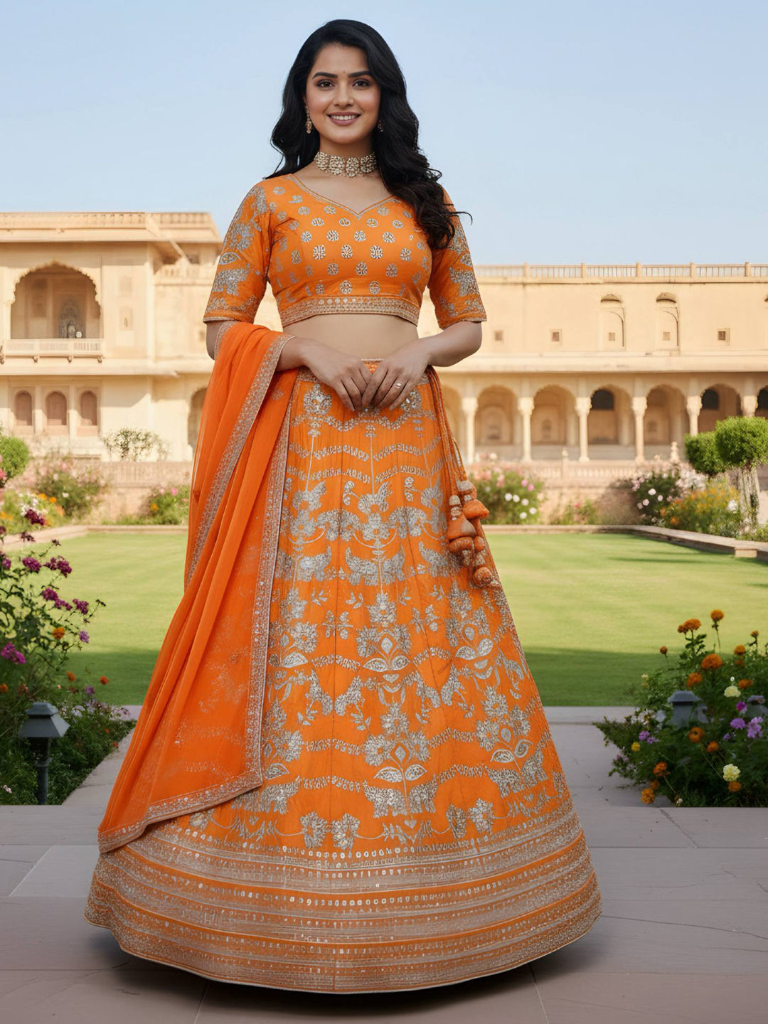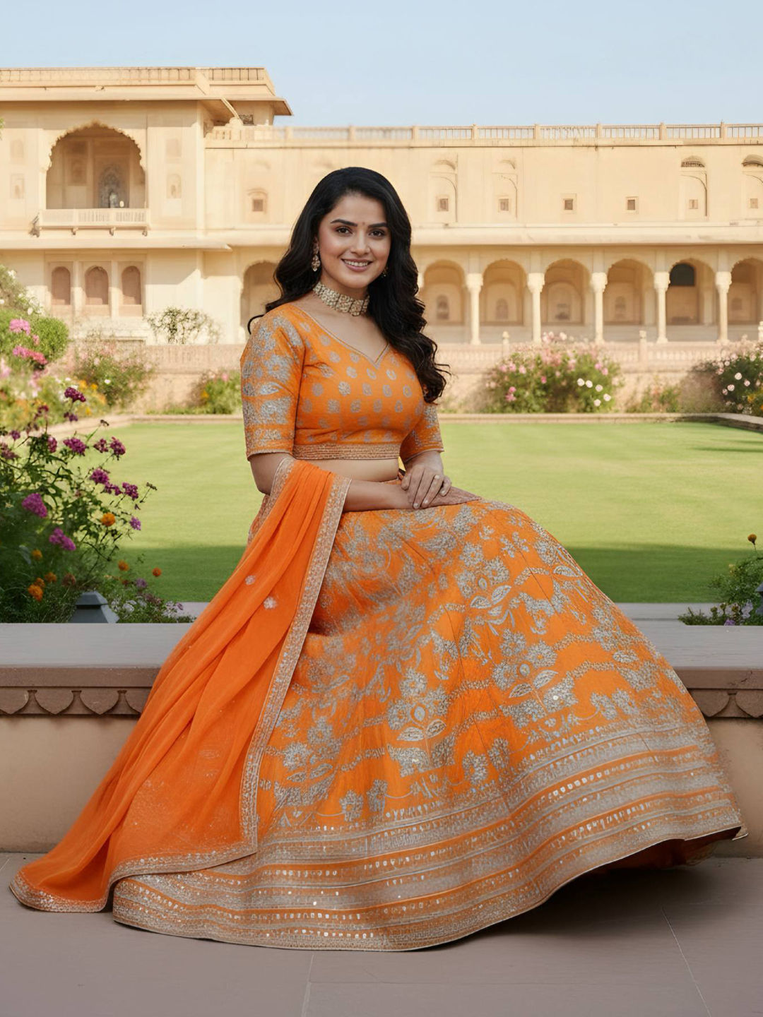 Net Reception Lehenga in Pink and Majenta with Embroidered work