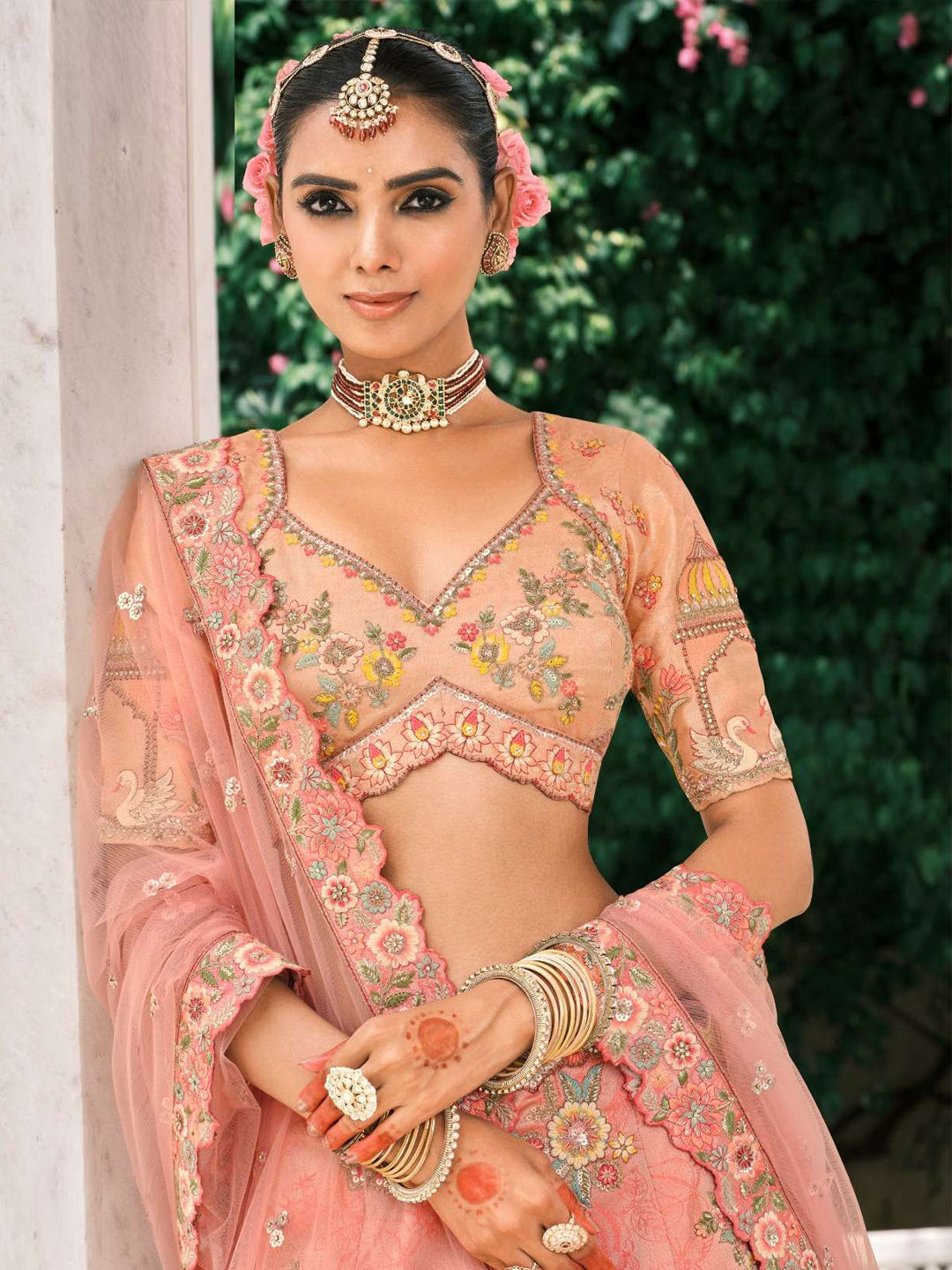 Silk Wedding Lehenga in Beige and Brown with Thread work