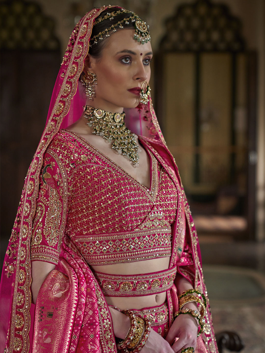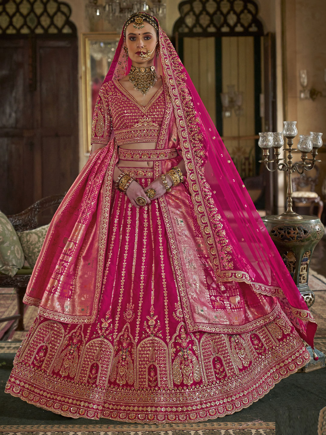 Pink and Majenta color Lehenga in Silk fabric with Embroidered, Sequence, Thread, Zari work