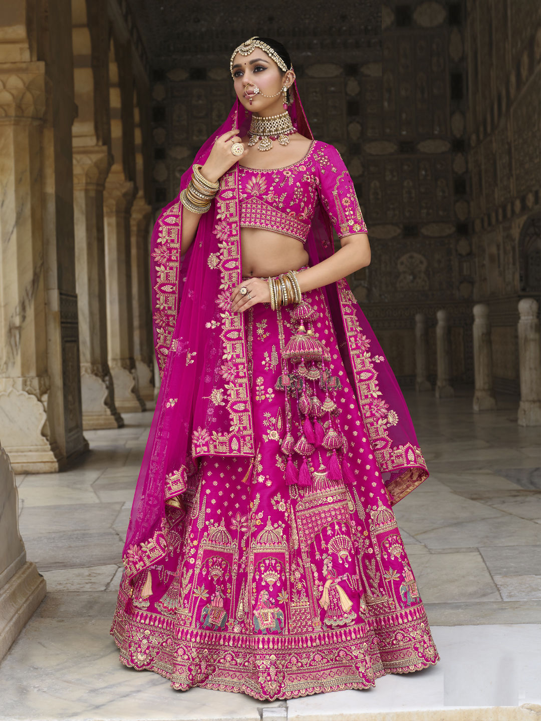 Silk Wedding Lehenga in Pink and Majenta with Sequence work