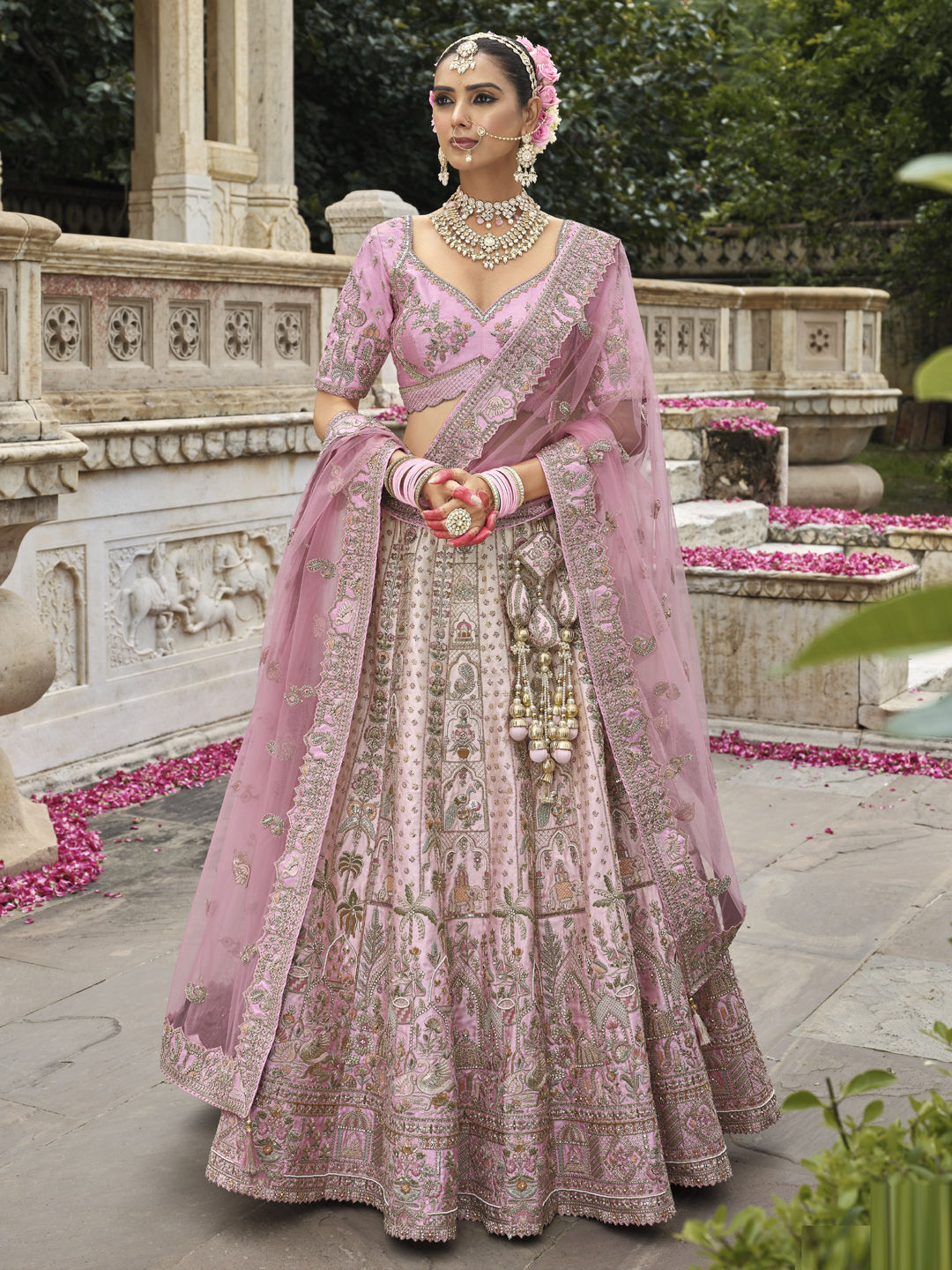 Silk Wedding Lehenga in Pink and Majenta with Sequence work