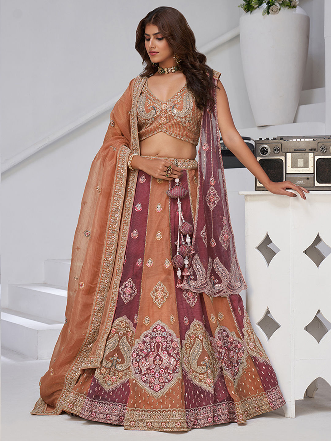 Beige and Brown, Pink and Majenta color Lehenga in Silk fabric with Embroidered, Resham, Zari work
