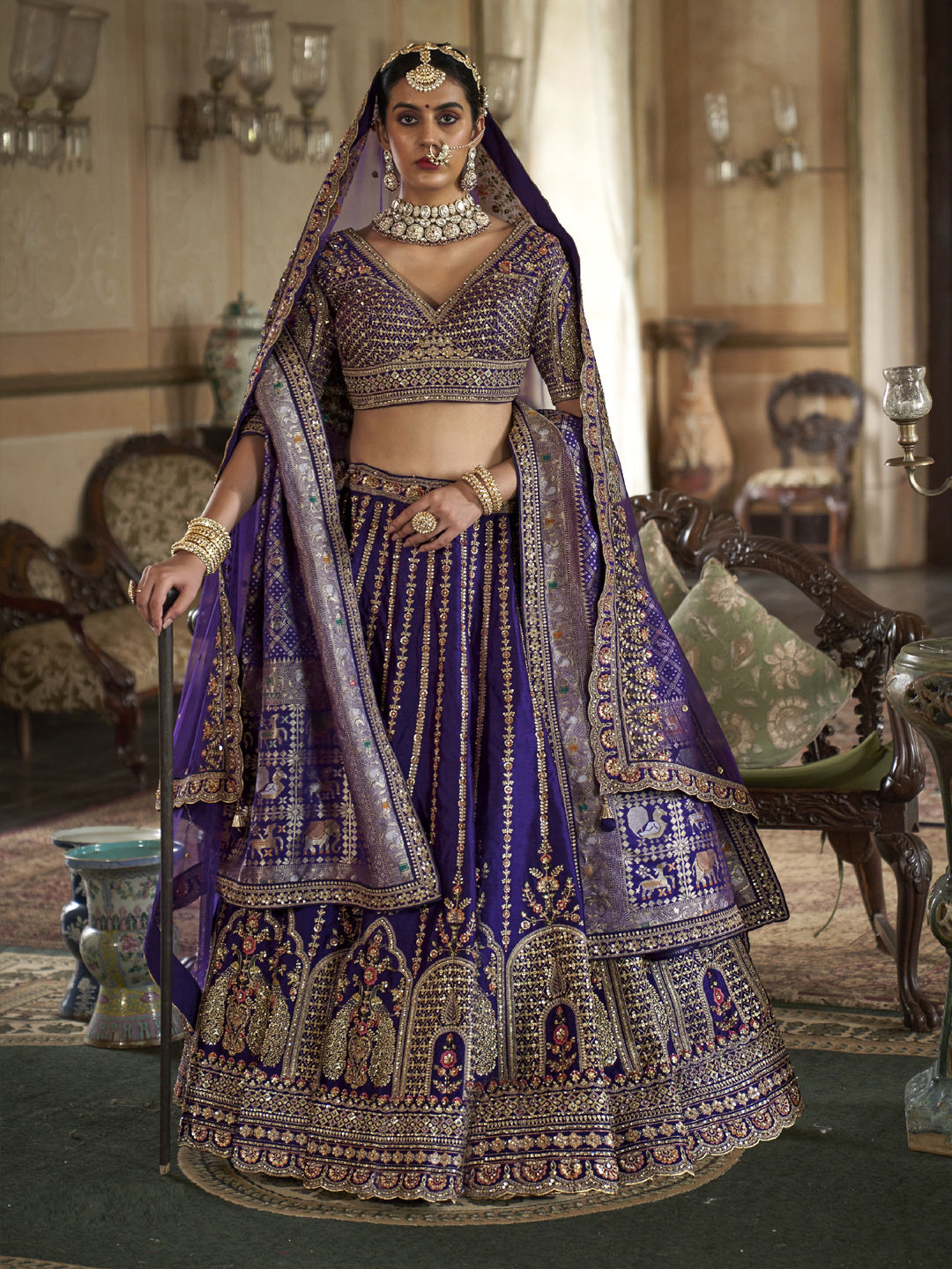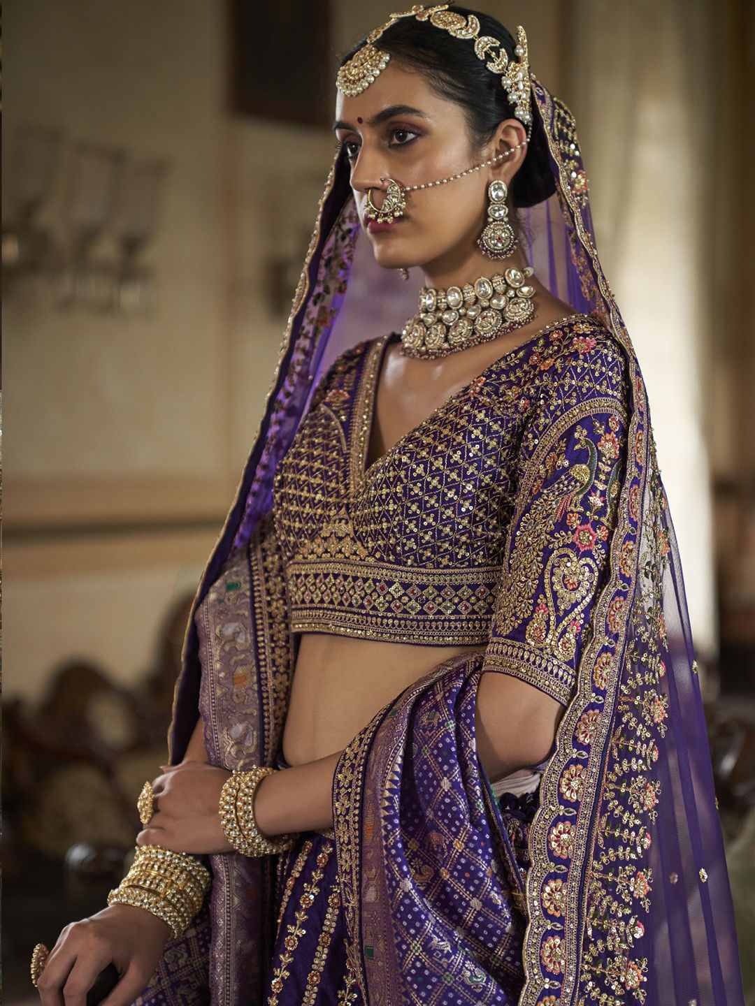 Purple and Violet color Lehenga in Silk fabric with Embroidered, Sequence, Thread, Zari work