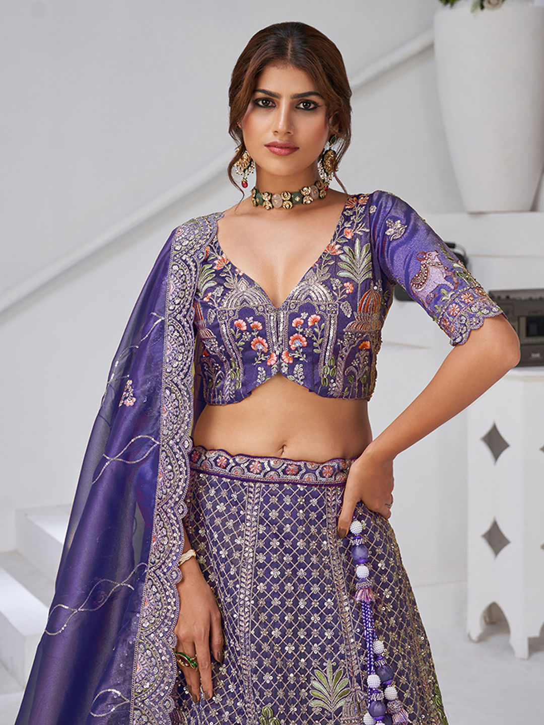 Purple and Violet color Lehenga in Silk fabric with Embroidered, Sequence, Thread, Zari work