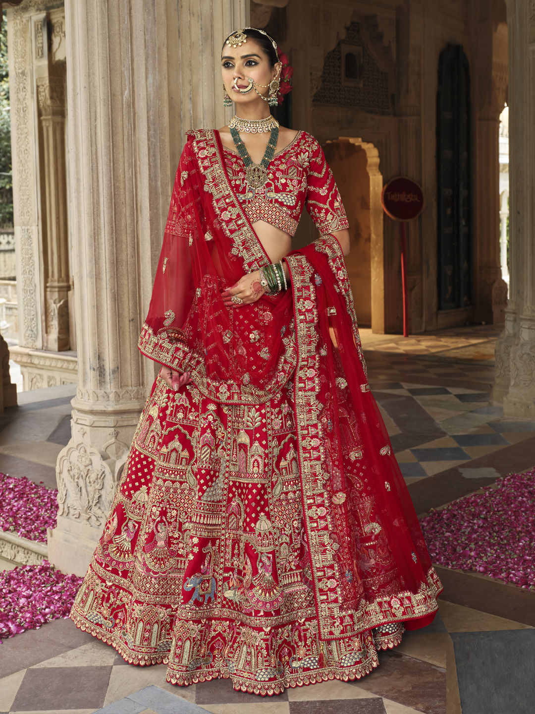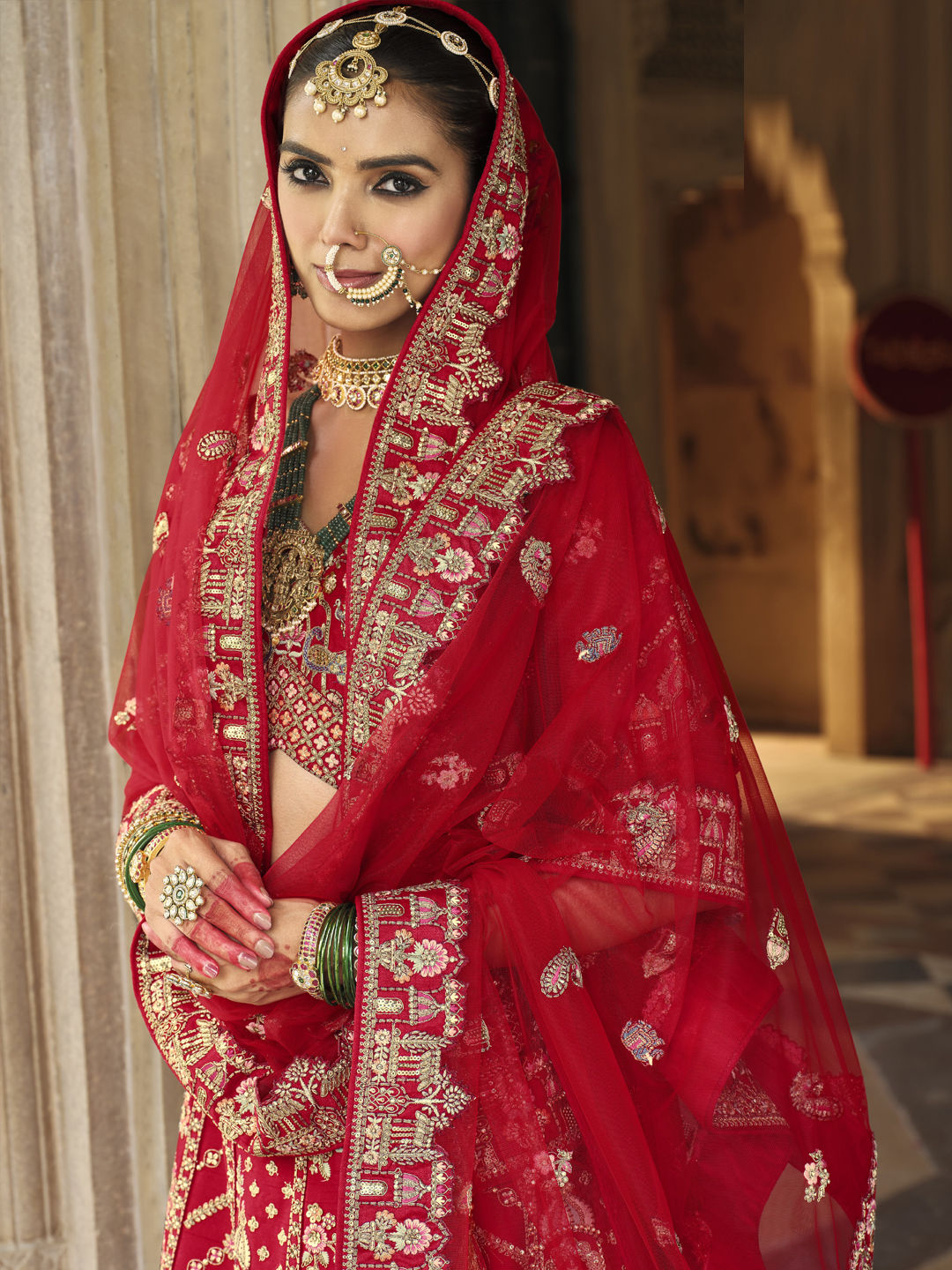 Silk Wedding Lehenga in Red and Maroon with Zari work