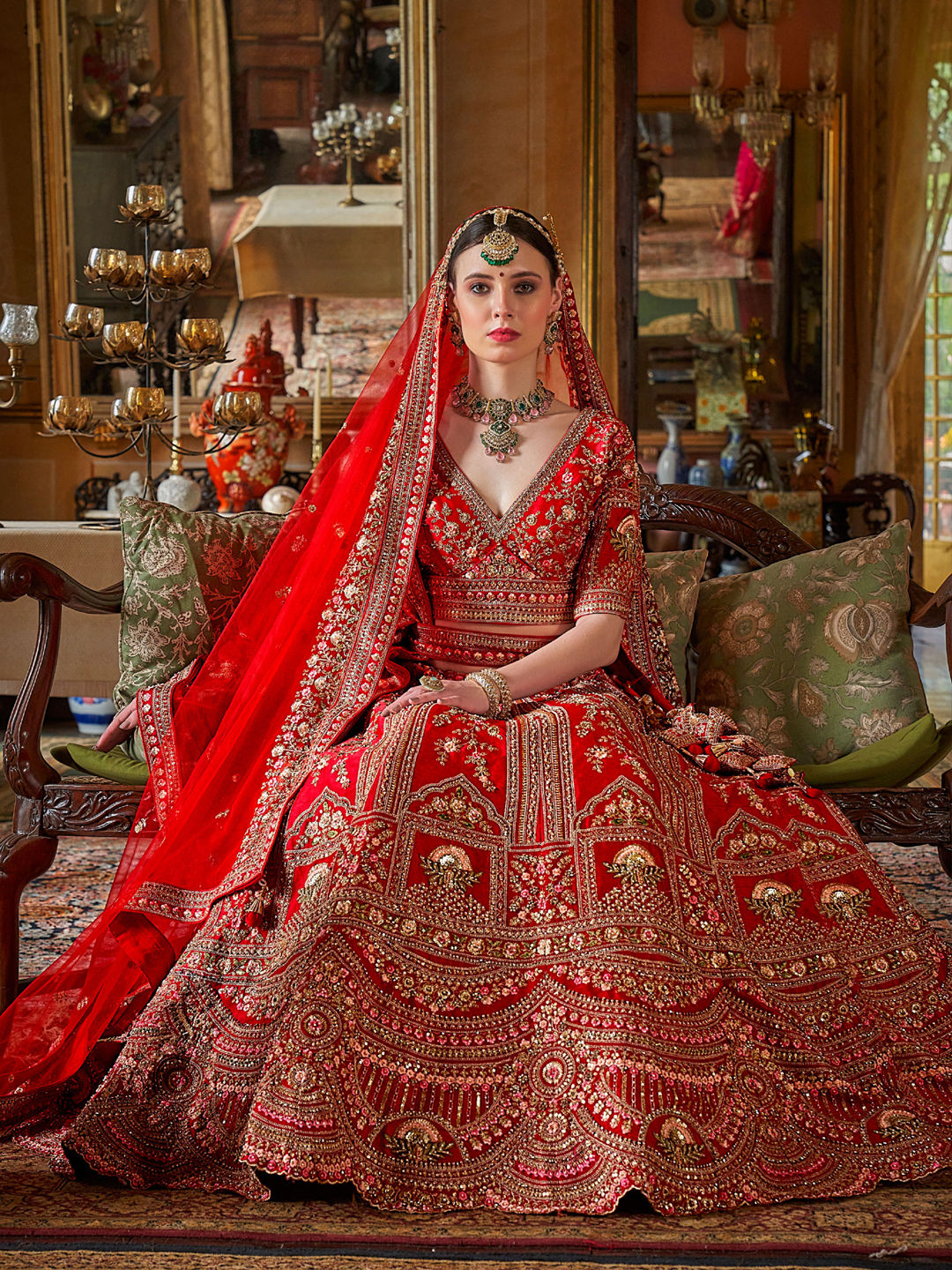 in Red and Maroon with Stone work