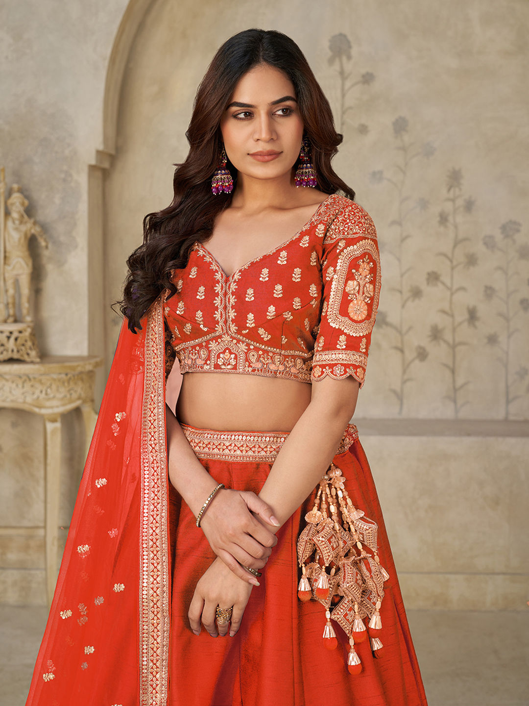 Red and Maroon color Lehenga in Silk fabric with Embroidered, Sequence, Thread, Zari work