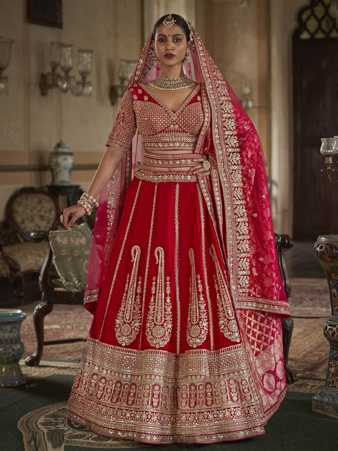 Silk Bridal Lehenga in Red and Maroon with Sequence work