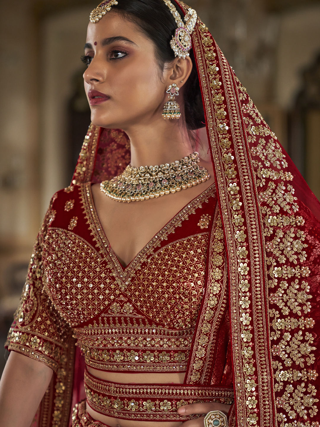 Red and Maroon color Lehenga in Silk fabric with Embroidered, Sequence, Thread, Zari work