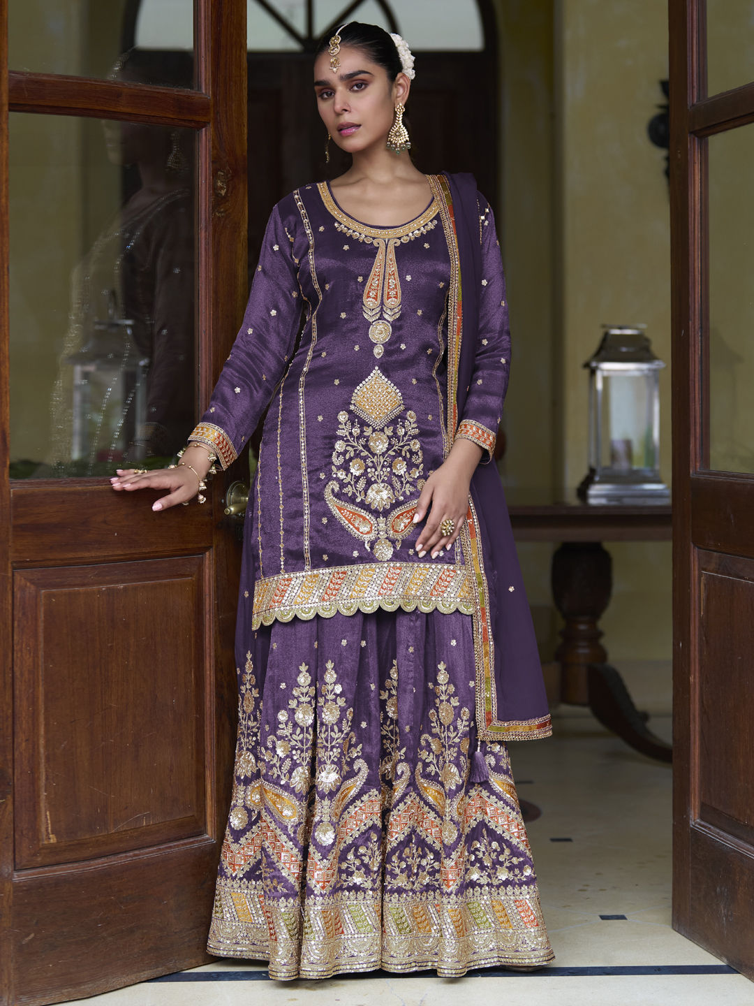 Purple and Violet color Long Lehenga Choli in Silk fabric with Embroidered, Sequence, Thread, Zari work